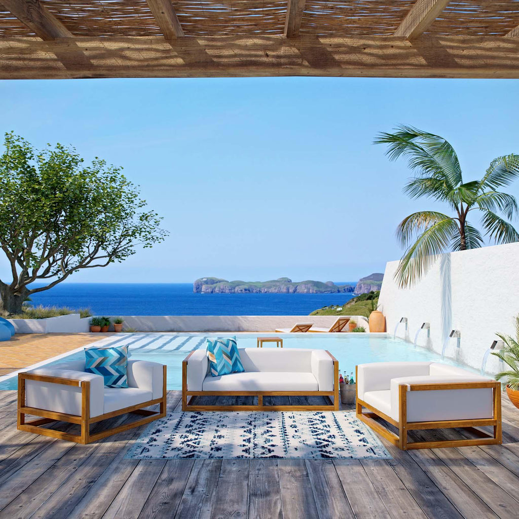 Experience wondrous sunsets and spirited al fresco dining with the Newbury Premium Grade A Teak Outdoor Patio Collection. Made of Premium Grade A Teak Wood, this teak collection comes with machine-washable sun, stain, water, mildew, and fade resistant Sunproof� Fabric for long-lasting use. A versatile addition to balconies, backyards, patios, gazebos, poolside or garden spaces, the Newbury Collection comes with matching armchair, sofa, ottoman, coffee table, and accent chair selections for a durable outdoor teak set that comes with a variety of dining and casual living seating options.