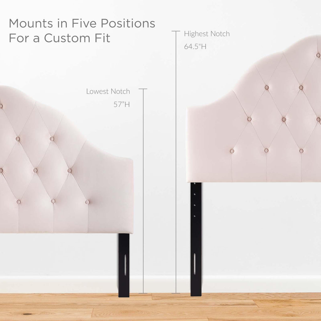 Regal curves and a slightly curved silhouette blend with plush vintage glamour to create the Sovereign Performance Velvet Full Headboard. A delightful focal point for a teen's bedroom, guest room, or dorm, this upholstered velvet headboard for full bed frames provides a soft, stain-resistant update for luxurious comfort while relaxing, reading, or conversing in bed. Solidly constructed from plywood and fiberboard with dense foam padding, this diamond tufted full-size velvet headboard comes with five mounting positions that are height adjustable from 45" - 52.5".