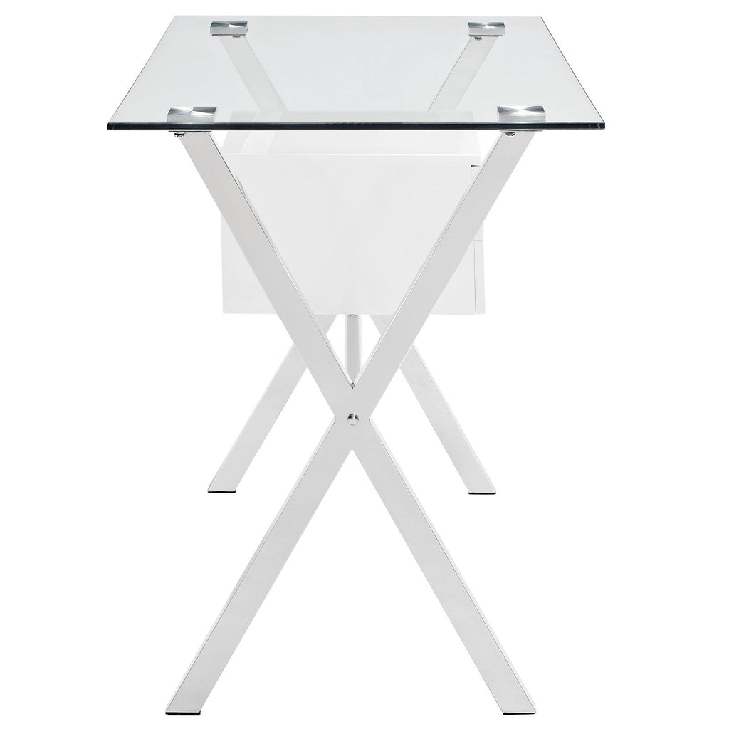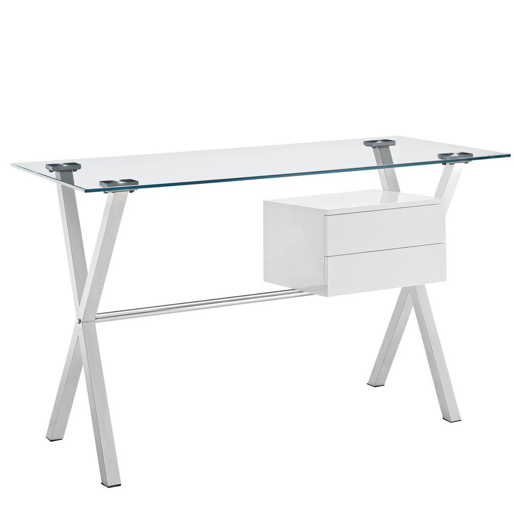 Keep your thoughts flowing through the Stasis modern office desk. Suspended by a polished stainless steel frame, the right drawer artfully stands out from the otherwise transparent piece. Outfitted with a tempered glass top, Stasis encourages you to hold onto the thoughts that matter and free your mind from distraction.