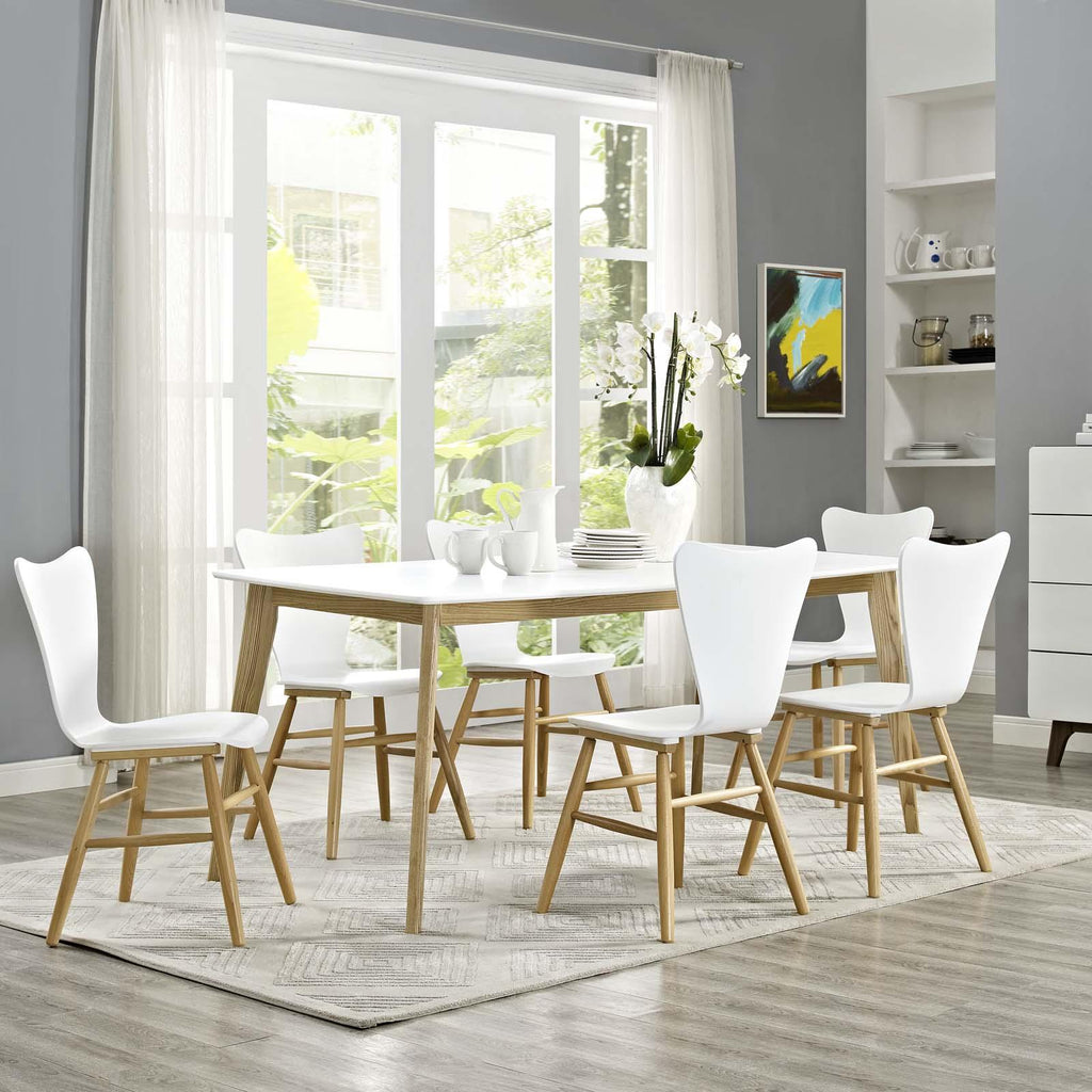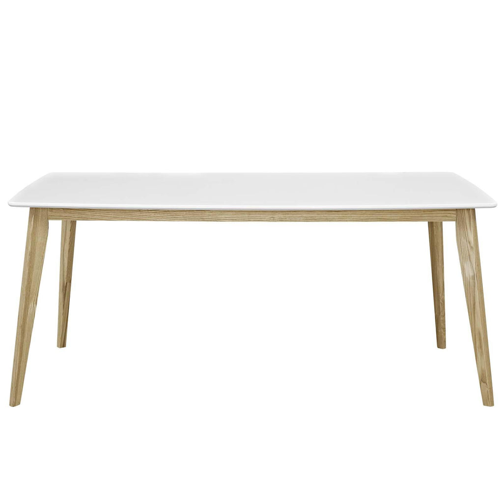 Elevate your space with the mid-century inspired Stratum 71" Dining Table. Stratum is a solid ashwood legged dining table with a smooth white lacquer top and a minimalist vibe perfect for the contemporary dining room. Invite family and friends to gather around with a splayed and tapered wood leg table that generates ample legroom. Useful both as a dining table and writing desk, Stratum is the perfect addition to the modern home. Set Includes: One - Stratum 71" Dining Table Mid-Century Inspired Dining Table Splayed And Tapered Ashwood Legs MDF White Laminate Top Easy Wipe Clean Surface Smooth Matte Finish Assembly Required Overall Product Dimensions: 35.5"L x 71"W x 30"H Table Dimensions: 35.5"L x 71"W Base Dimensions: 23.5"L x 59"W x 2.5"H Leg Dimensions: 30"H