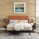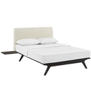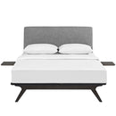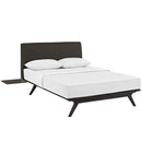 Transform your ordinary bedroom arrangements into a more compelling d�cor with the Tracy bedroom set. The Tracy bed, with its open design and platform leg support, proves that elegance doesn�t need to come at the expense of simplicity. Finely upholstered with a foam padded fabric headboard, Tracy is an easy to maintain toffee brown stained piece that admirably delivers both comfort and style. Tracy requires assembly and should be spot cleaned only. Headboard included. Queen size mattress not included. The Tracy queen size platform bed does not need a box spring.