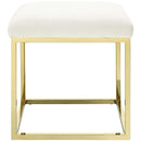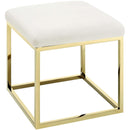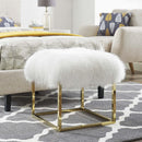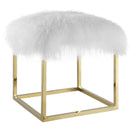 Make a statement with Anticipate. Brimming with clean lines and a sleek modern look, Anticipate features a gold stainless steel base, foam padded seat upholstered in luxurious white sheepskin, and non-marking foot caps that help protect your flooring. The perfect addition to your bedroom, living space or entryway, Anticipate is a versatile ottoman that combines comfort and style with a supportive seat cushion and weight capacity up to 265 lbs. No assembly required.
