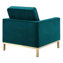 Revolutionize your living room furniture with the iconic Loft Button Tufted Performance Velvet Accent Lounge Armchair. Adding visual depth to your living room or lounge space, Loft features soft and durable performance velvet upholstery accented in elegant button tufting. This retro modern living room chair comes in a captivating linear design with an external tubular stainless steel frame, four gold stainless steel legs, and non-marking foot caps. Inspired by the richness of mid-century modern style, Loft is the preferred choice of living rooms and lounge spaces. Chair Weight Capacity: 300 lbs.