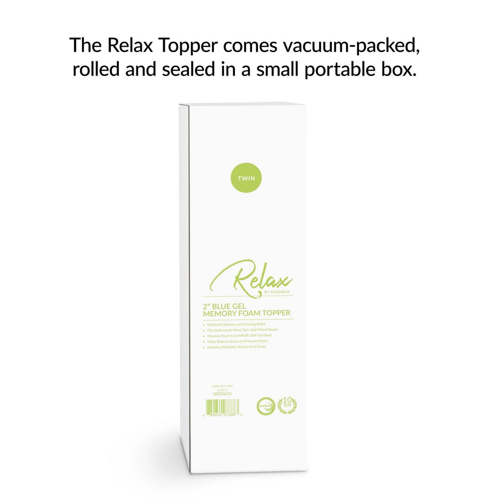 Welcome extra support with the Relax 2� Gel-Infused Memory Foam Topper in Twin. Relax positions underneath most twin-size fitted sheets and features ventilated open-cell technology with gel-infusion to help keep your body climate-steady by dissipating body heat. Designed to relieve stress on pressure points, Relax comes CertiPUR-US� certified so you can be confident that the memory foam inside the topper was independently laboratory tested for content, emissions, and durability. Outfitted with a machine washable cover made of bamboo derived from a rayon and polyester blend, Relax is a responsive 2� gel mattress topper that enhances your existing mattress with exceptional pressure and cooling relief.