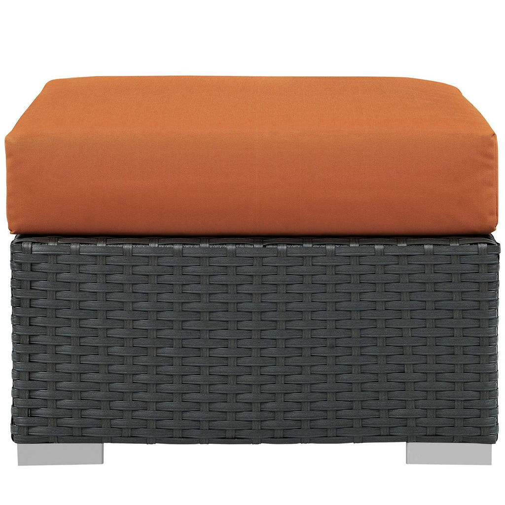 Outfit your patio with an imaginative Sojourn Outdoor Patio Furniture series. The Sojourn Outdoor Patio Ottoman offers a robust seating experience that easily rearranges according to usage. Outfitted with industry-leading Sunbrella� fabric cushions, synthetic rattan weave, UV protection, powder-coated aluminum frame, immensely enjoy your outdoor time with an outdoor wicker ottoman that enhances patio, backyard, or poolside areas. This installment of the series is an Outdoor Patio Ottoman.