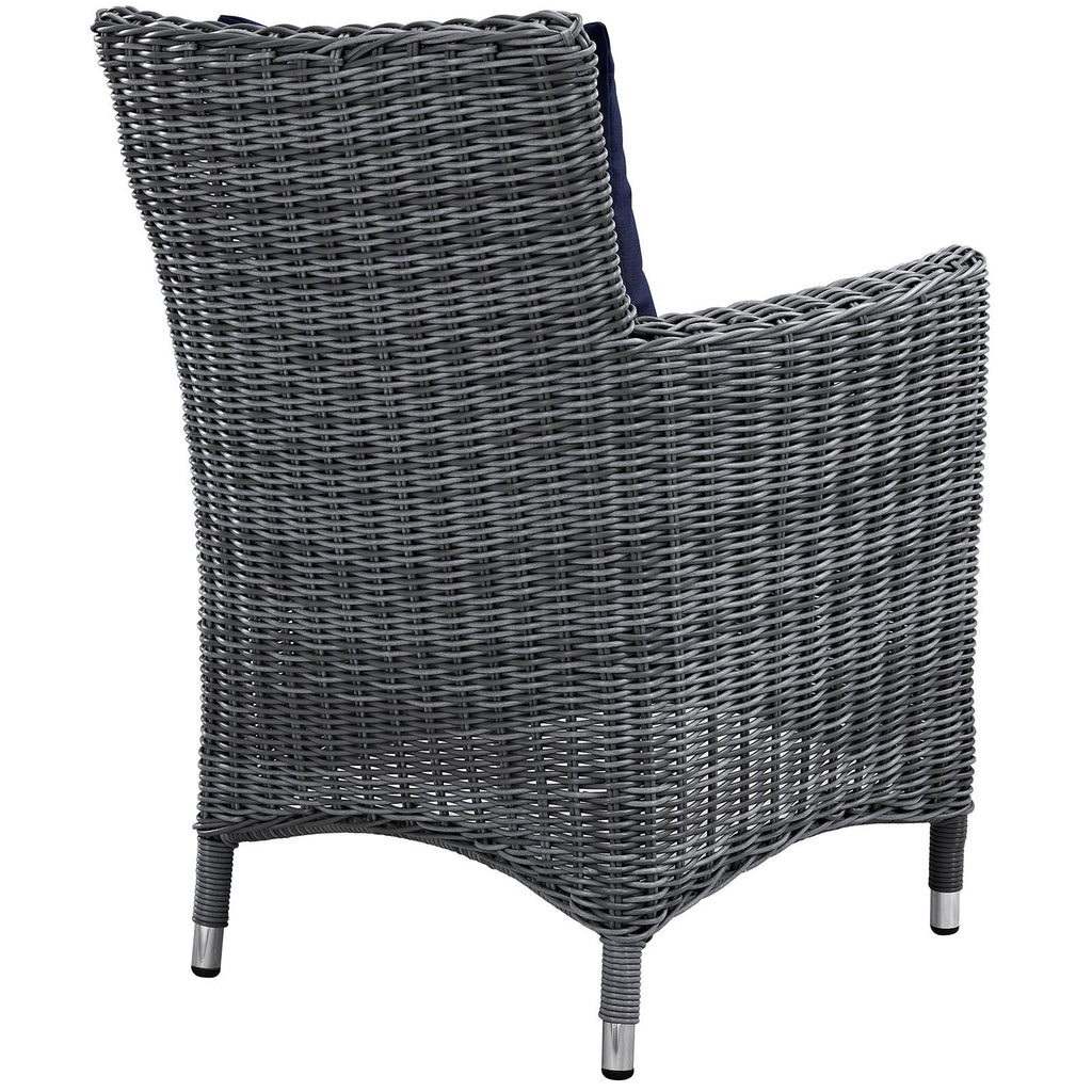 Experience the outdoors with exceptional comfort and quality. Summon Outdoor Patio Dining Arm Chair offers an exquisite two-tone synthetic rattan weave, plush all-weather cushions with industry-leading Sunbrella� fabric, UV protection, and a sturdy powder-coated aluminum frame. Featuring rounded arms and an elegant modern look, Summon Outdoor Arm Chair is part of an avant-garde outdoor sectional series well-equipped for enhancing patio, backyard, or poolside gatherings. This installment of the series is an Outdoor Patio Dining Arm Chair Set.