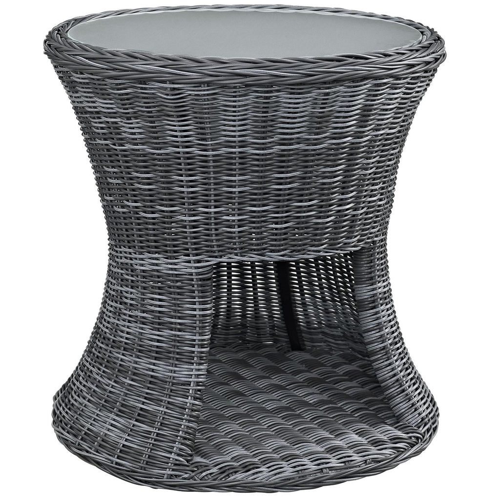Experience the outdoors with exceptional comfort and quality. Summon Outdoor Patio Side End Table offers an exquisite two-tone synthetic rattan weave, UV protection, and a sturdy powder-coated aluminum frame. Featuring an elegant modern look, Summon Outdoor End Table is part of an avant-garde outdoor sectional series well-equipped for enhancing patio, backyard, or poolside gatherings. This installment of the series is an Outdoor Patio Side Table.