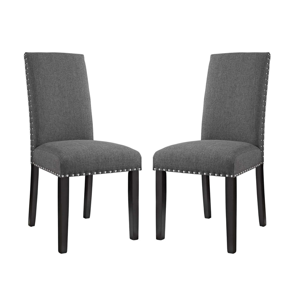 Wrap up moments of quality seating with the Parcel dining chair. Finely upholstered in polyester with a nail-head trim, dense foam padding, and solid wood legs, Parcel delivers a concise offering that enhances the dining experience in a subtle and unassuming way. Assembly Required.