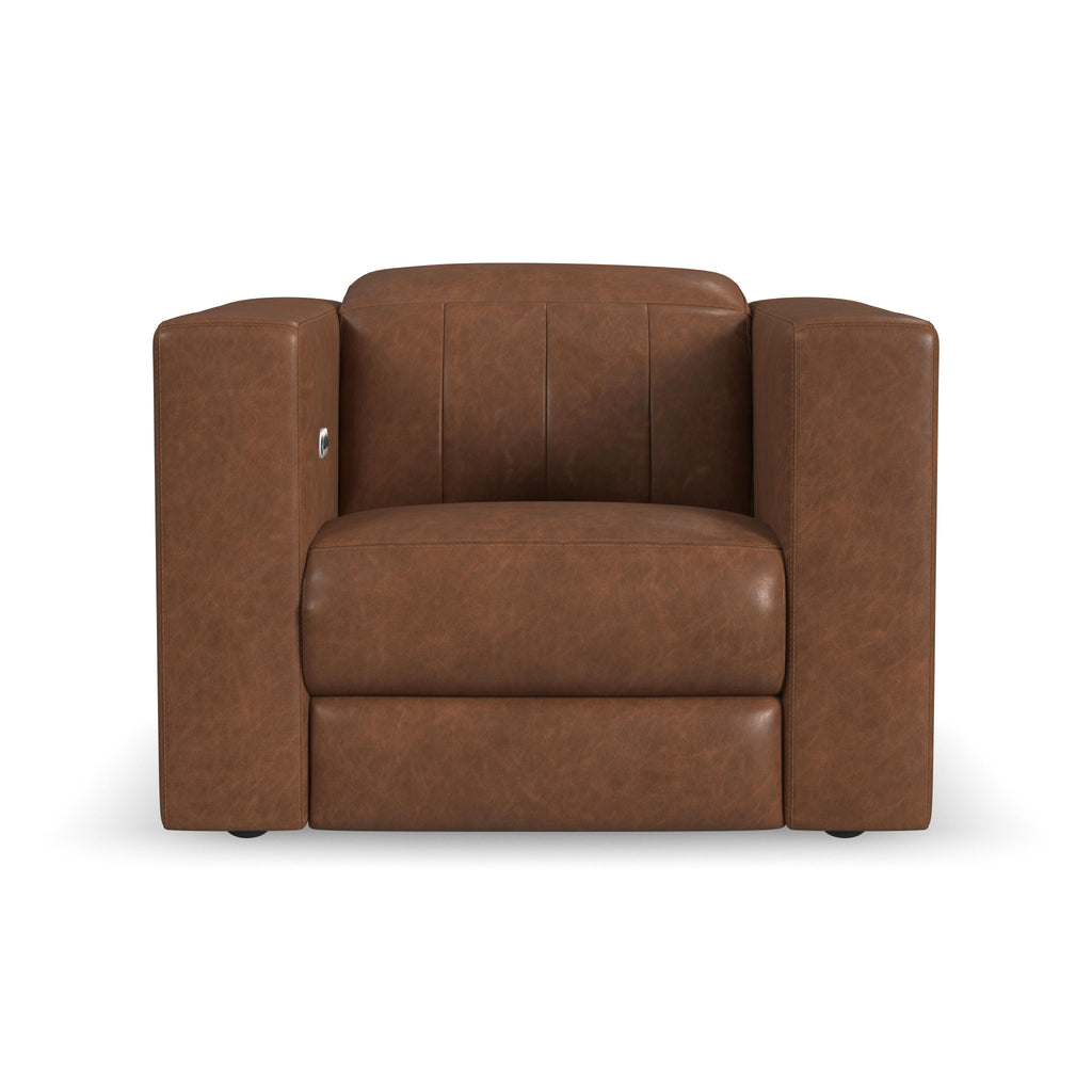 Casually elegant and substantial in form, the Austin power recliner with power headrest defies first-impression expectations with customizable comfort and Zero Gravity technology. Wide track arms and a spacious seat cushion beckon relaxation, while alluring in-back channeling and a bold geometric profile add contemporary flair. Upholstered in sumptuous leather that develops a unique patina as it ages, the Austin recliner is designed to be cherished by those who appreciate the authentic character of materials.