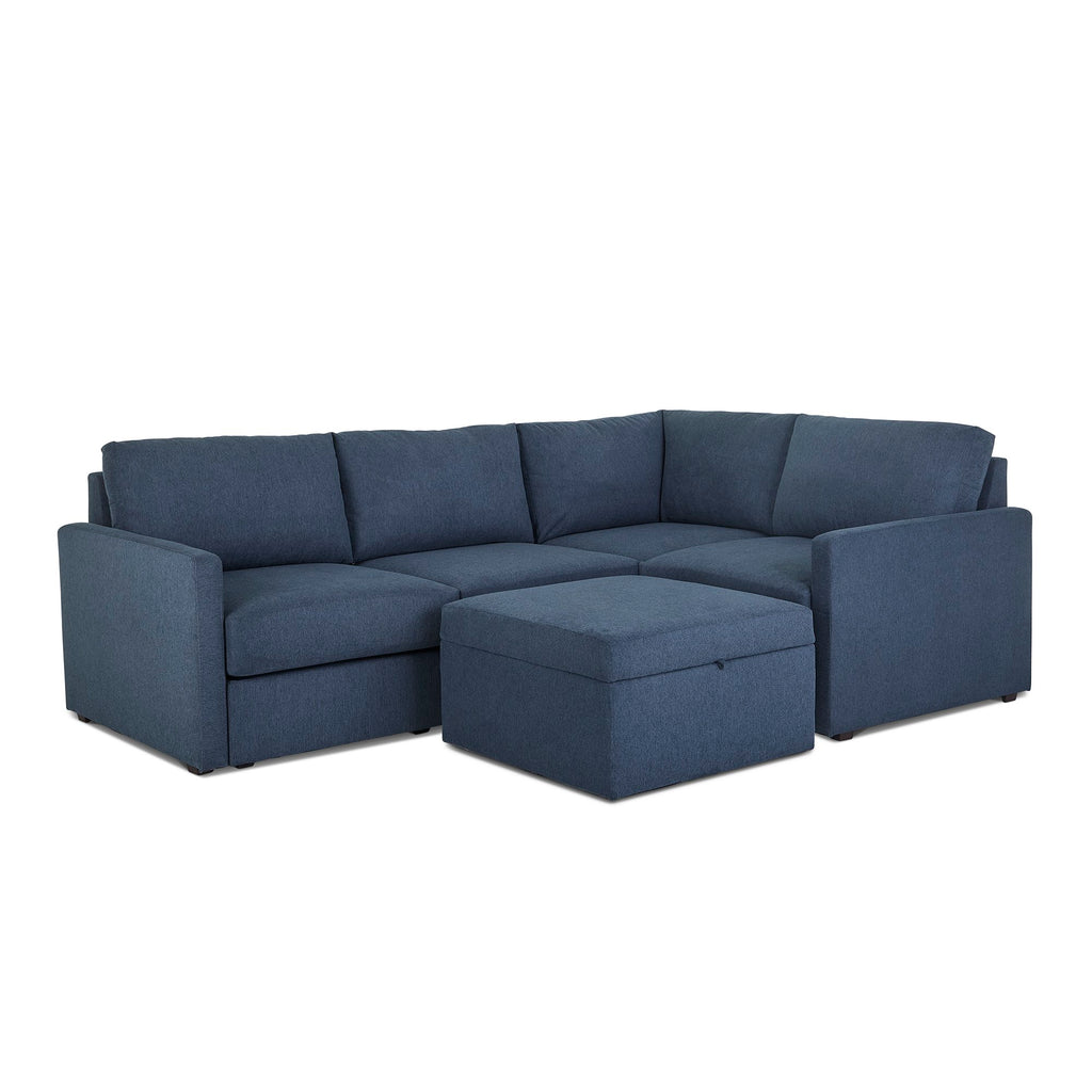 Designed for a lifetime of flexibility, the Flex 4-seat sectional with storage ottoman can easily contract or expand as your needs change. Use the ottoman as a standalone piece or combine with other the other modular components to create the perfect seating configuration for your space. Built with Blue Steel Spring technology and sustainable, stain-resistant performance fabric, Flex seating provides deep-seated, blissful comfort and long-lasting livability. And assembly is a breeze with a patented J-Bracketª Òno-toolÓ method that takes minutes, rather than hours.