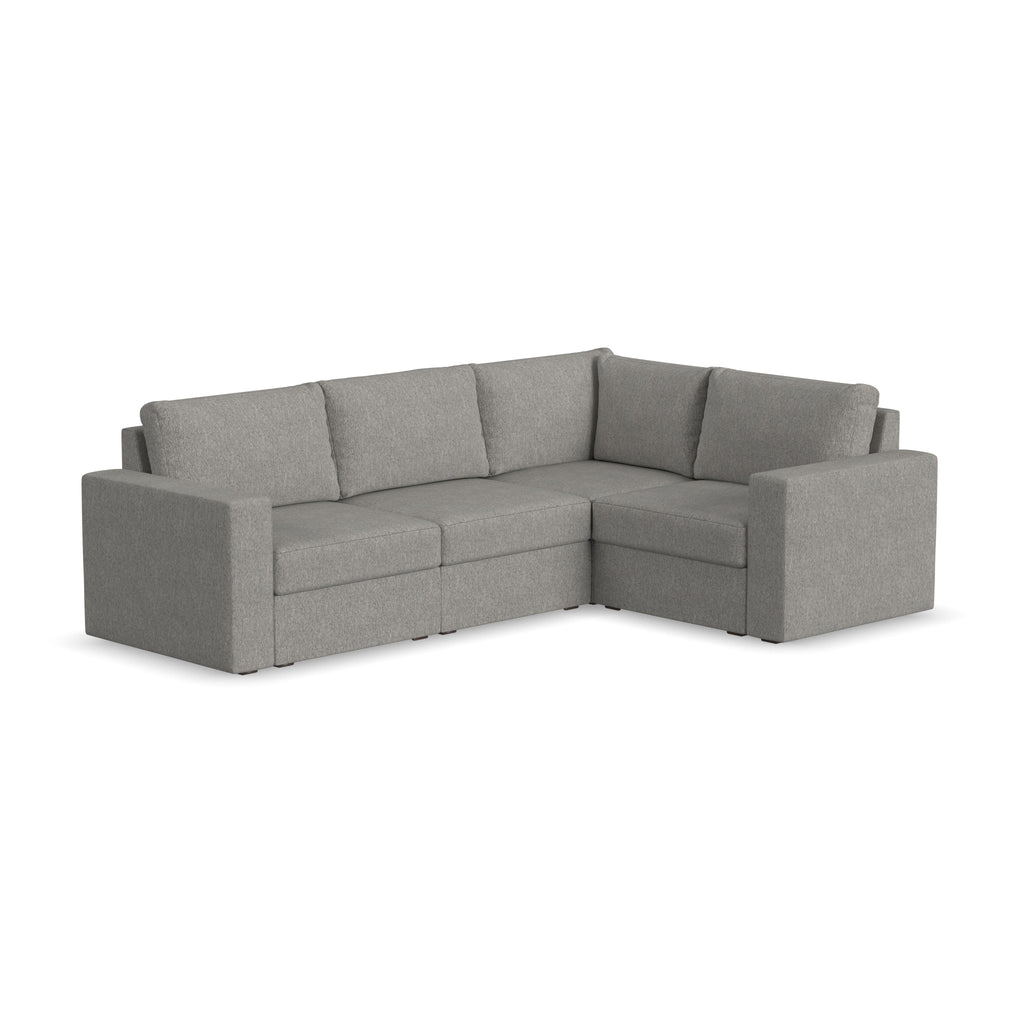 Designed for a lifetime of flexibility, the Flex 4-seat sectional supports the space you have now and can easily expand when your home does. Modular components allow a multitude of configurations so you can create the perfect seating arrangement. Built with Blue Steel Spring technology and sustainable, stain-resistant performance fabric, Flex seating provides deep-seated, blissful comfort and long-lasting livability. And assembly is a breeze with a patented J-Bracketª Òno-toolÓ method that takes minutes, rather than hours.