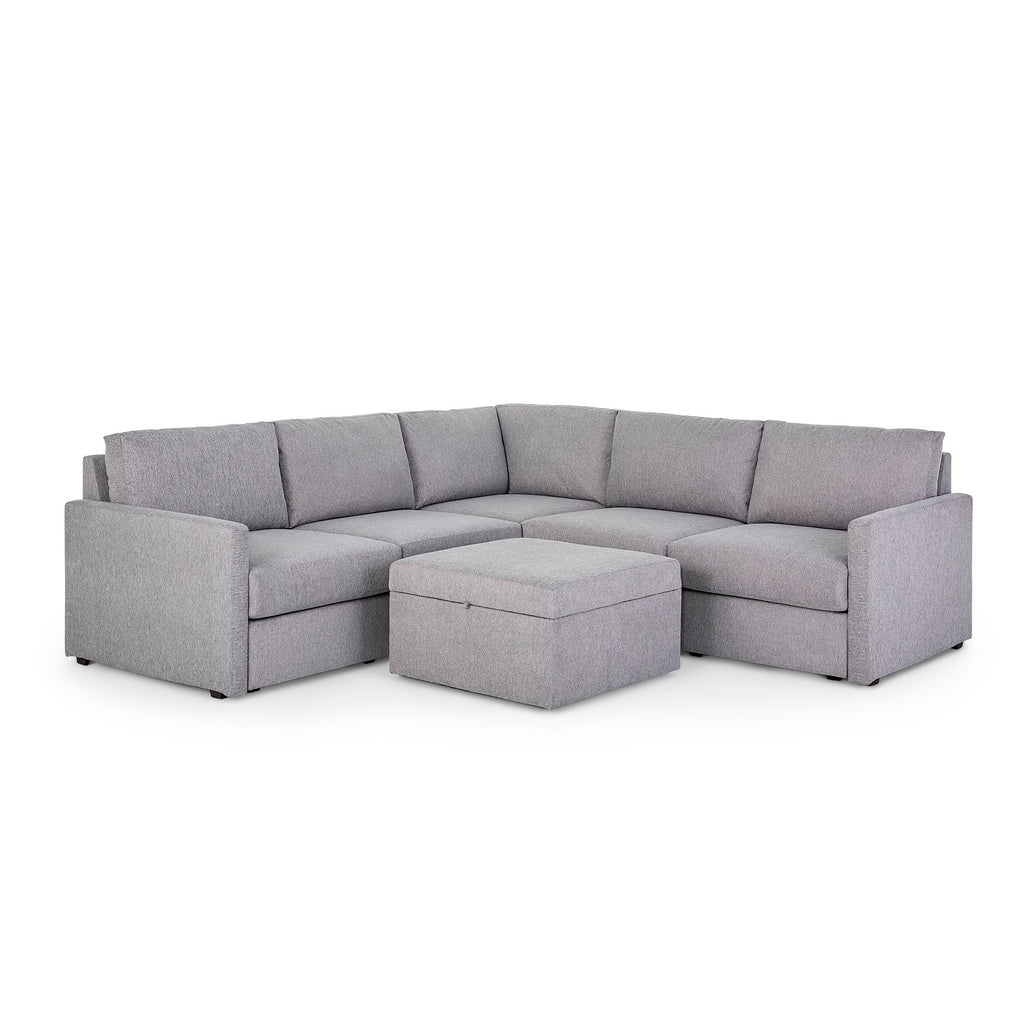 Designed for a lifetime of flexibility, the Flex 5-seat sectional with storage ottoman can easily contract or expand as your needs change. Use the ottoman as a standalone piece or combine with other the other modular components to create the perfect seating configuration for your space. Built with Blue Steel Spring technology and sustainable, stain-resistant performance fabric, Flex seating provides deep-seated, blissful comfort and long-lasting livability. And assembly is a breeze with a patented J-Bracketª Òno-toolÓ method that takes minutes, rather than hours.