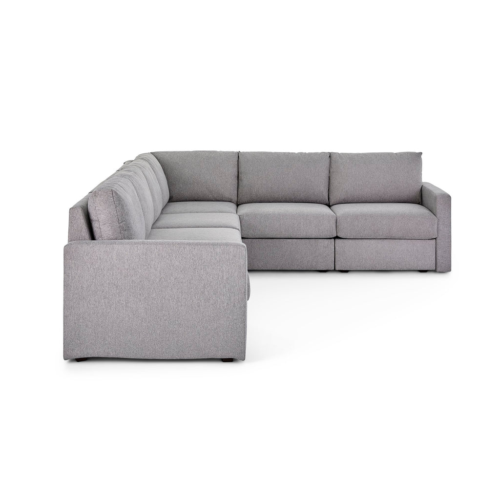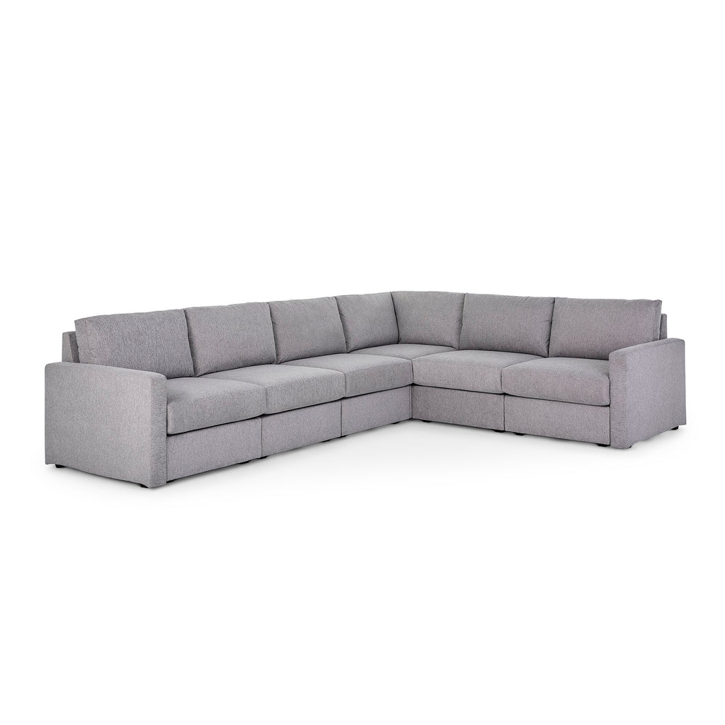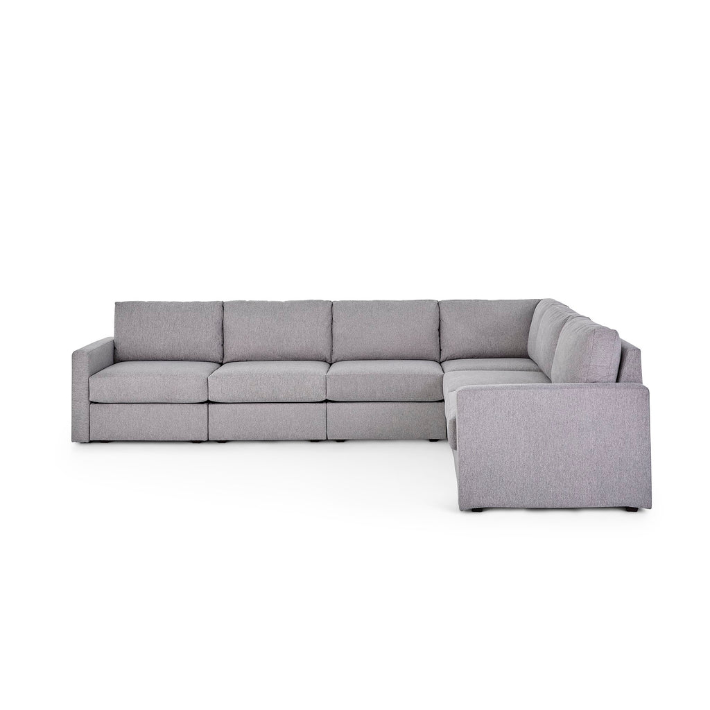 Designed for a lifetime of flexibility, the Flex 6-seat sectional provides the ultimate relaxation zone for gatherings and can be easily reconfigured again and again to create the perfect seating arrangement. Built with Blue Steel Spring technology and sustainable, stain-resistant performance fabric, Flex modular seating provides deep-seated, blissful comfort and long-lasting livability. And assembly is a breeze with a patented J-Bracketª Òno-toolÓ method that takes minutes, rather than hours.