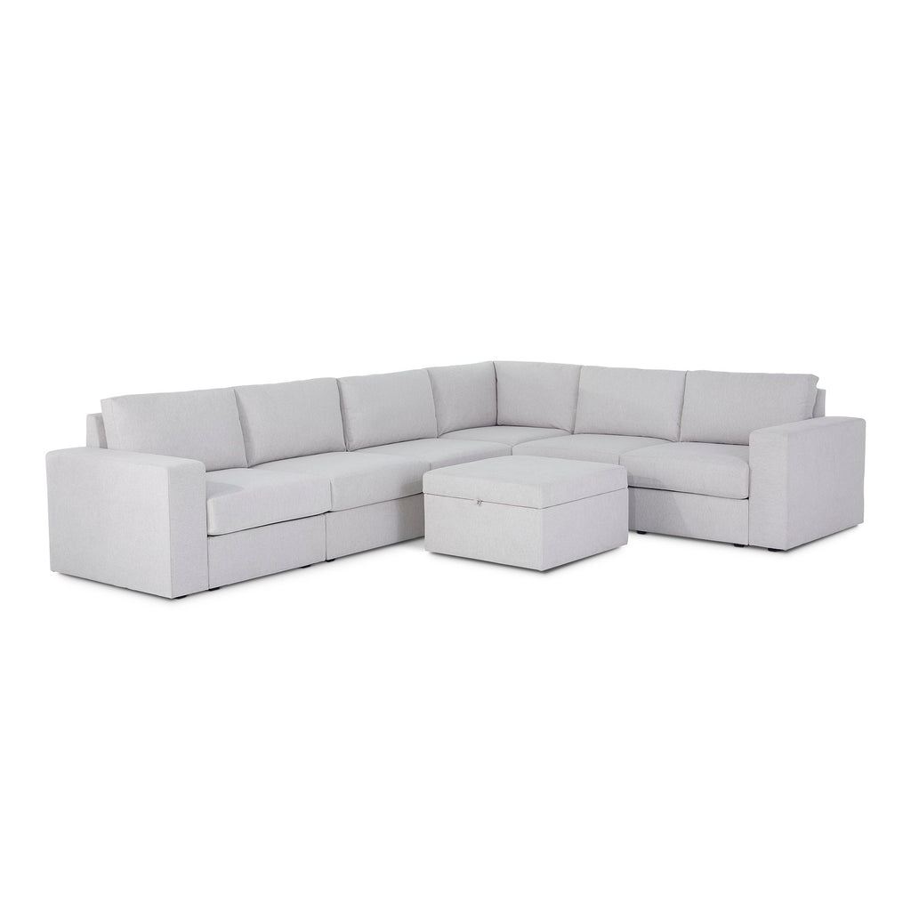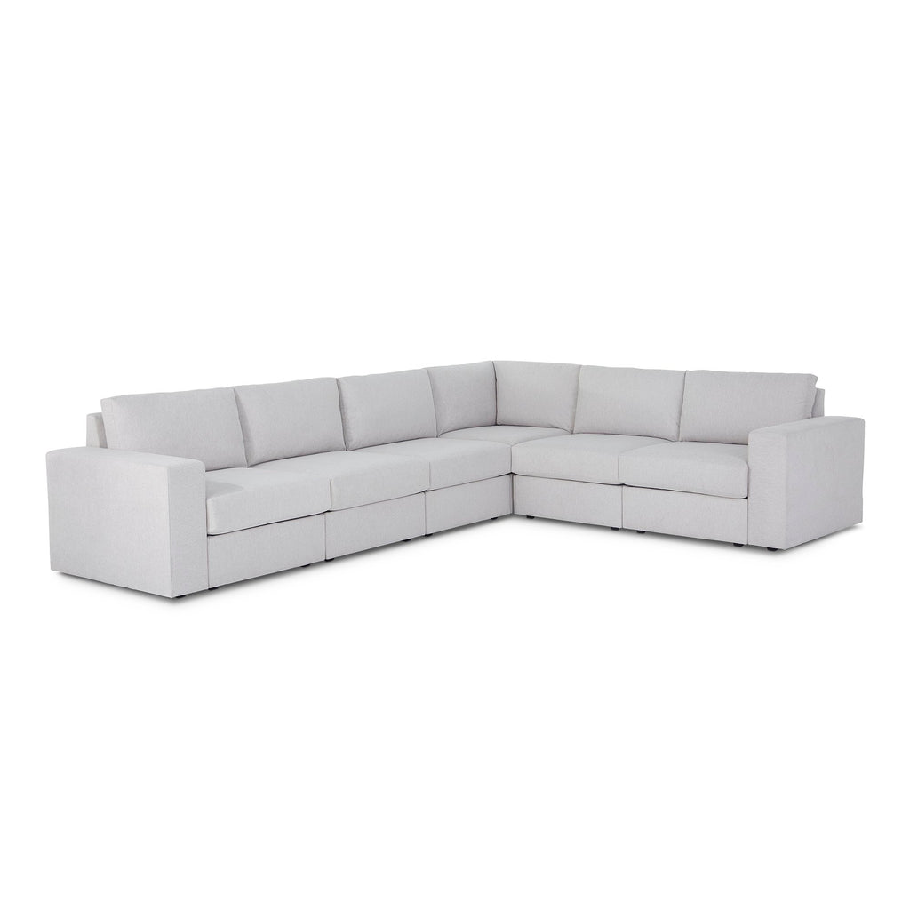 Designed for a lifetime of flexibility, the Flex 6-seat sectional provides the ultimate relaxation zone for gatherings and can be easily reconfigured again and again to create the perfect seating arrangement. Built with Blue Steel Spring technology and sustainable, stain-resistant performance fabric, Flex modular seating provides deep-seated, blissful comfort and long-lasting livability. And assembly is a breeze with a patented J-Bracketª Òno-toolÓ method that takes minutes, rather than hours.