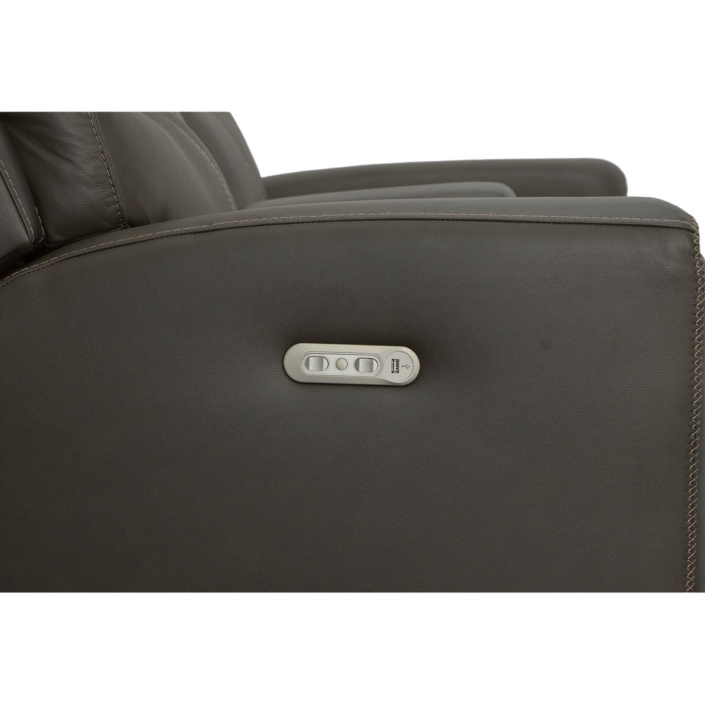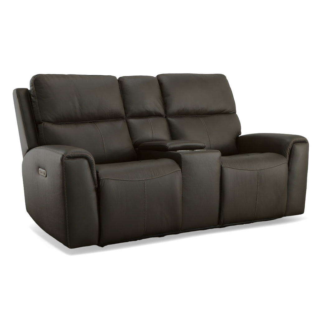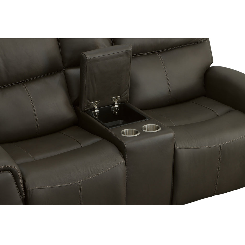Keep your snacks, beverages, and remotes right where you need themÑand stay comfortable as you tune in (or tune out!)Ñwith the Jarvis leather power reclining loveseat with console and power headrests. Zero Gravity recline technology gives you a feeling of weightlessness, while Flexsteel's patented Blue Steel Springª ensures the loveseat offers you an optimal range of motion. When youÕre ready to kick back and relax, use the power controls with built-in USB ports on either side of the loveseat to independently adjust the headrest and recline. And you donÕt have to sacrifice style to get all this convenience and comfort. The Jarvis loveseat offers a contemporary look with clean lines, sleek pad-over arms and decorative cross-stitching.