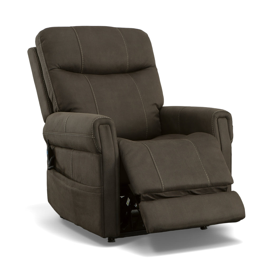 Relax in style with the clean linesÊof the Jenkins power lift recliner with power headrest. Showcasing pad-over arms, a plush back cushion and headrest, and an extended footrest this lift recliner provides tremendous comfort for when you're relaxing. The easy to use hand wand control allows you to adjust the recline, headrest support, and lift assistance at the touch of a button. The high-quality, bark brown fabric is easy to clean and durable for every day use. And with Flexsteel's patented Blue Steel Springª at the heart of it's seat, offering unmatched durability and comfort, you can kick back and relax with Jenkins.