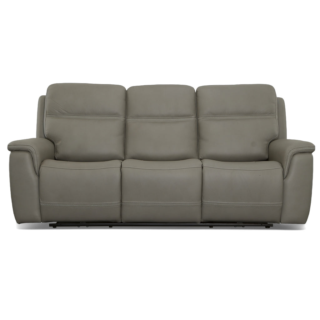 Transform your living space with the Sawyer power reclining sofa with power headrests and lumbar, a perfect blend of comfort and style. This stunning design features high-quality, gray top grain leather upholstery with unique cross-stitching and a distinct arm silhouette, adding a sophisticated touch to any room. Customize your comfort with power recline, headrests and lumbar support at the touch of a button and experience Zero Gravity reclining, relieving pressure from your joints. Designed for durability and longevity, this sofa includes FlexsteelÕs patented Blue Steel Springª, providing unmatched seat comfort and durability that you can count on.