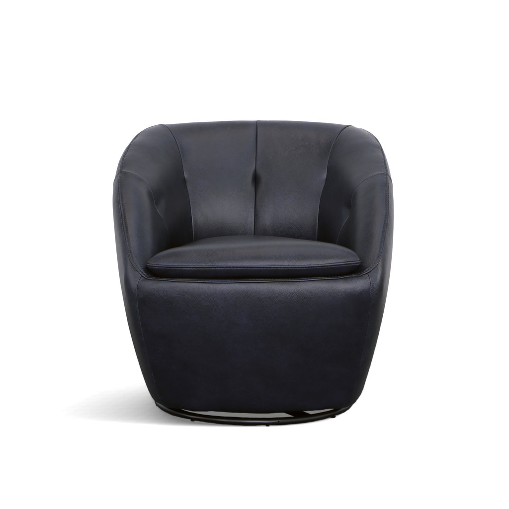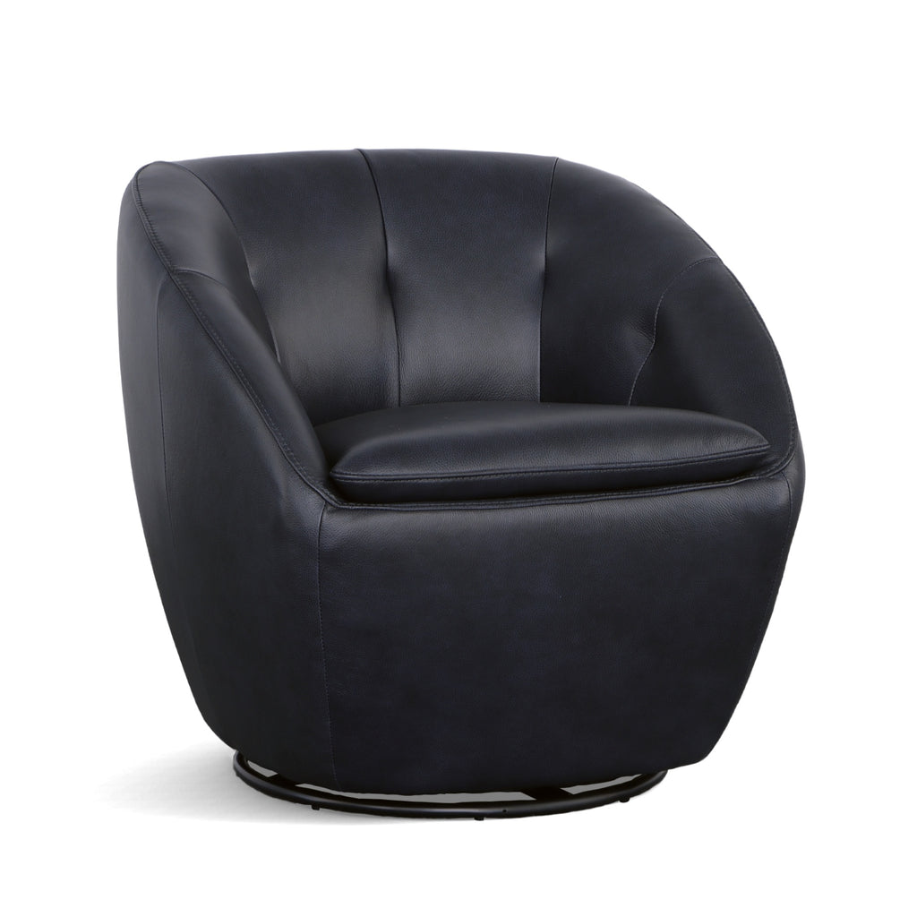 Wade's curved arms slope down into the seat cushion and wrap around the back of the frame enveloping you as you sink in and relax. The luxurious seat cushionÊprovides tremendous comfort, and a swivel mechanism is sure to quickly make WadeÊyour new favorite seat in the house.