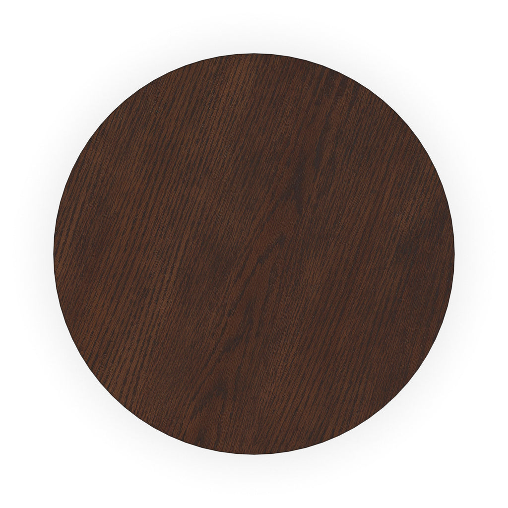 Add effortless style and architectural appeal to your living room with the Waterfall round end table. This striking table features a timeless silhouette defined by clean lines and simple geometric shapes, including a substantial sculptural crisscross base that supports the top. Group and nest this table with the coordinating Waterfall round coffee table for added visual interest and function. The Waterfall round end table is well-crafted from solid rubberwood and oak veneers and features a rich walnut brown finish for lasting beauty.