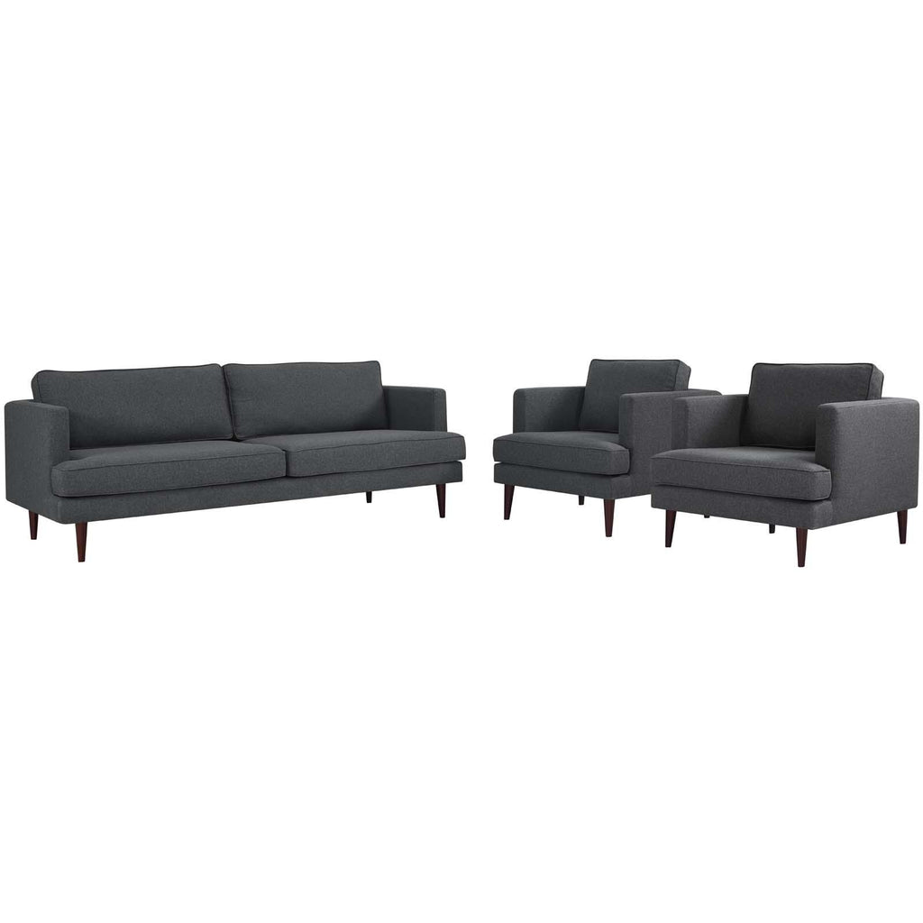 Versatility abounds in the streamlined silhouette of Agile Sofa and 2 Armchair Set. Whether mid-century, contemporary or modern d�cors suit your style, the clean lines, squared edges, tapered wood legs with non-marking foot caps of this low-profile collection are sure to make a statement in virtually any setting. Densely padded foam cushions with removable, machine-washable covers grant a superior lounge spot perfect for relaxing or casual entertaining.