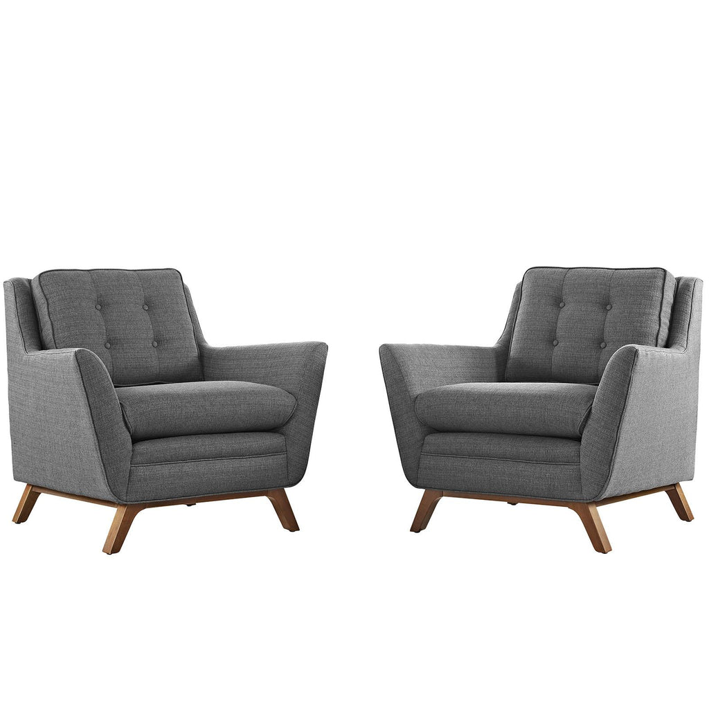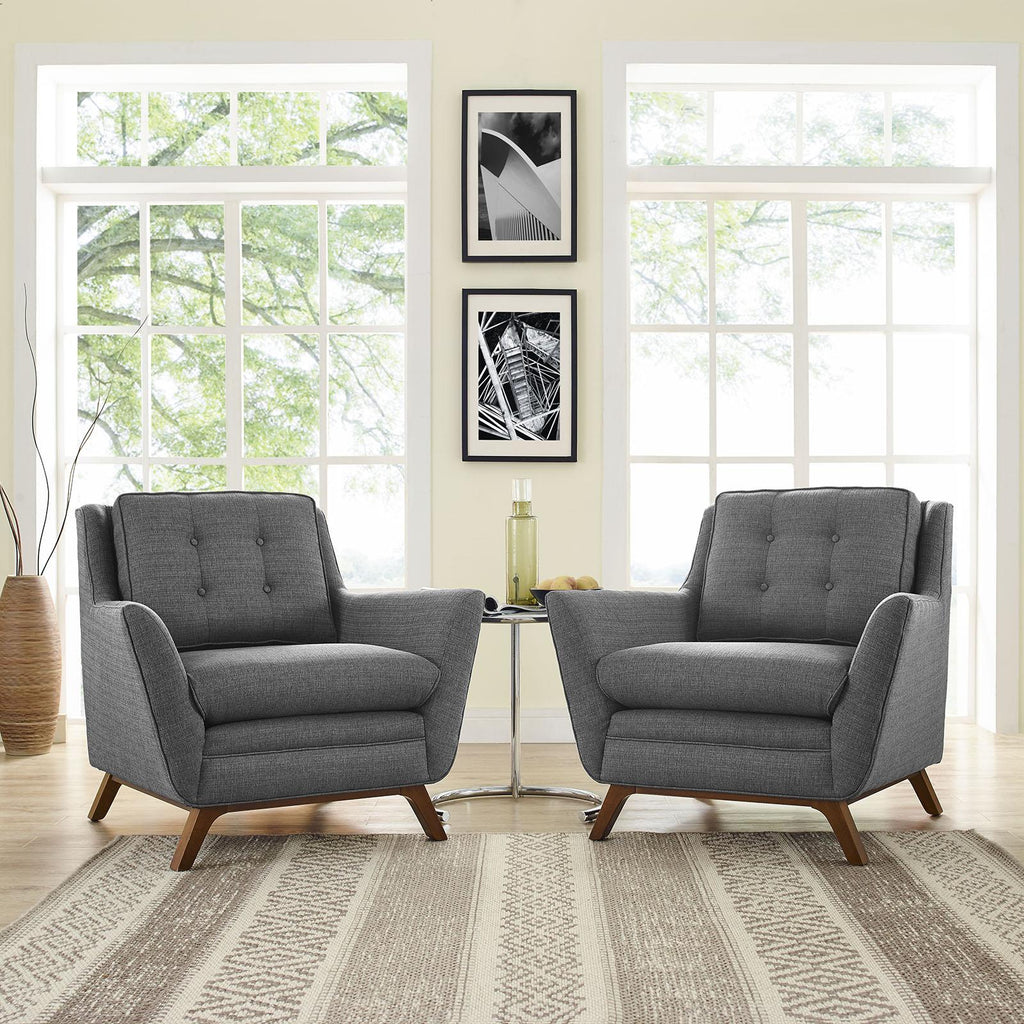 Dominate your d�cor with the expertly designed Beguile Collection. Exquisitely crafted with gently sloping arms, comfortable plush seat cushions, and adeptly tufted back cushion buttons, Beguile is a delightful collection that reinvents mid-century style. Outfitted with a solid wood walnut-stained base and fine fabric, Beguile comes perfect for living room, lounge and meeting areas.