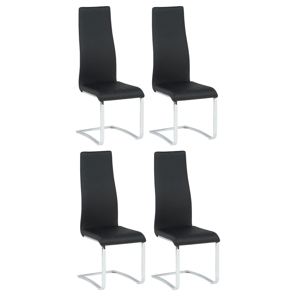 Bring sleek sophistication to your dining area with this high-back side chair in rich black leatherette. The iconic Breuer-inspired silhouette is paired with a cantilever chrome base for a clean, modern look. Designed for comfort, the ergonomic backrest offers excellent support, while the armless frame provides an open, contemporary feel. A perfect fit for minimalist, modern, or industrial-style dining spaces.