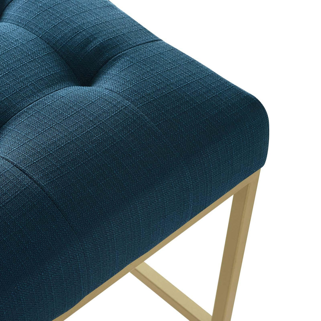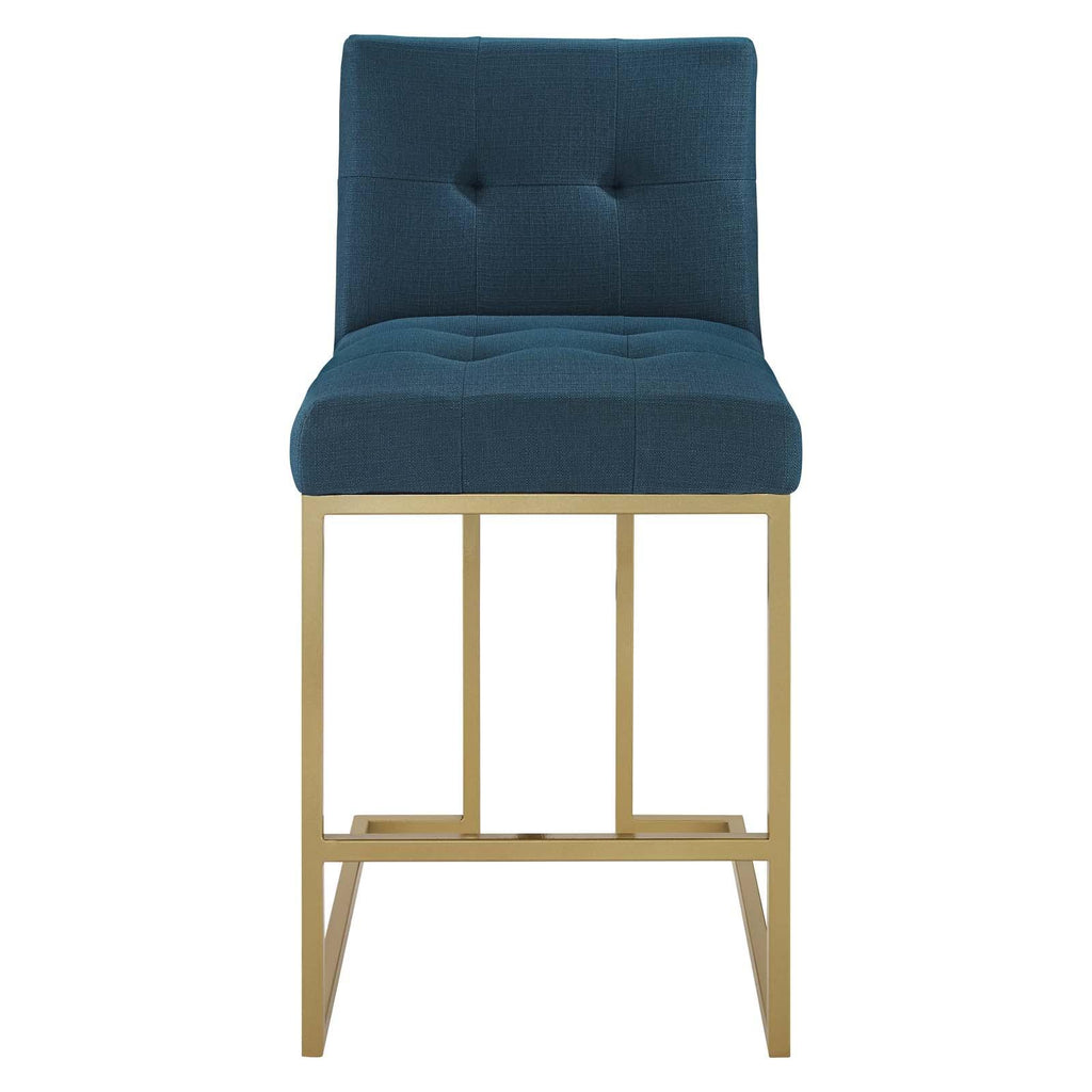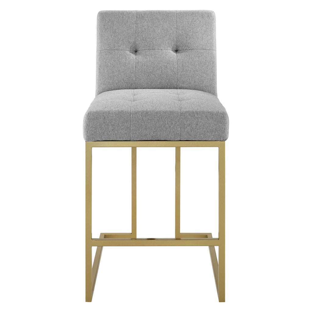 Maximize your dining room decor with Privy. A glam deco kitchen counter stool, Privy features soft and durable fabric upholstery for a streamlined modern look. This counter height stool rests atop a sleek gold stainless steel geometric base with a footrest that will elevate your dining experience. No assembly required. Counter Stool Weight Capacity: 331 lbs.