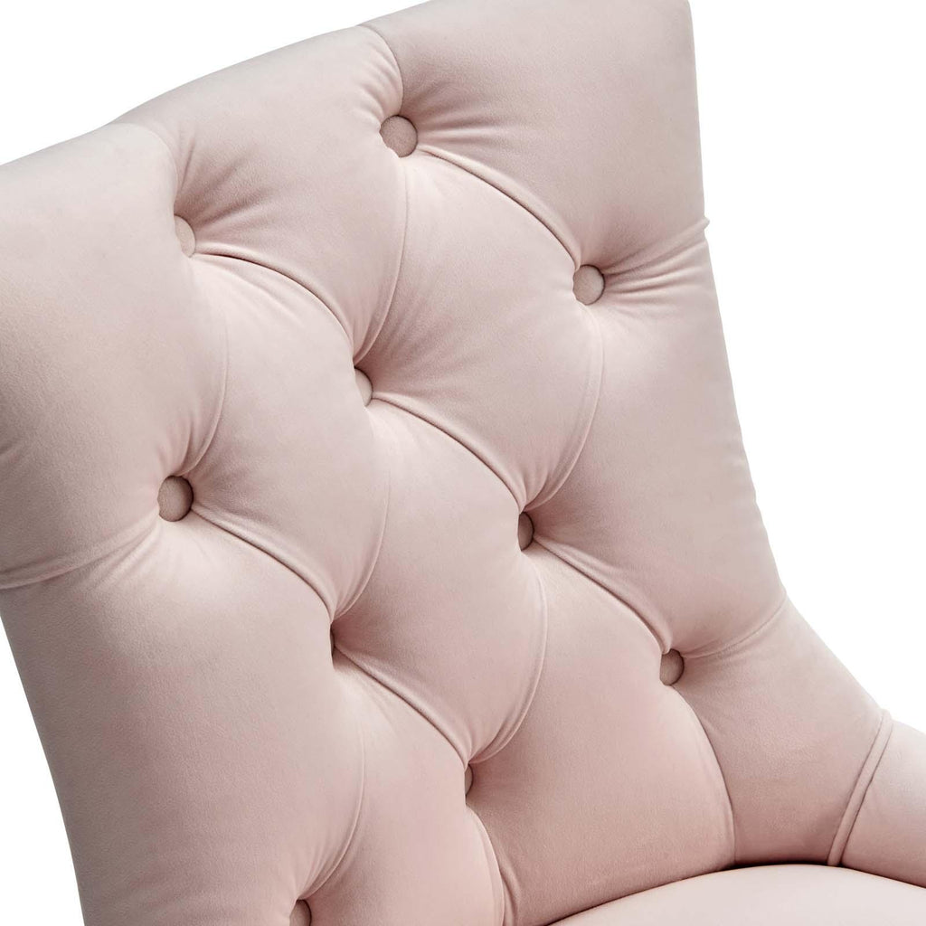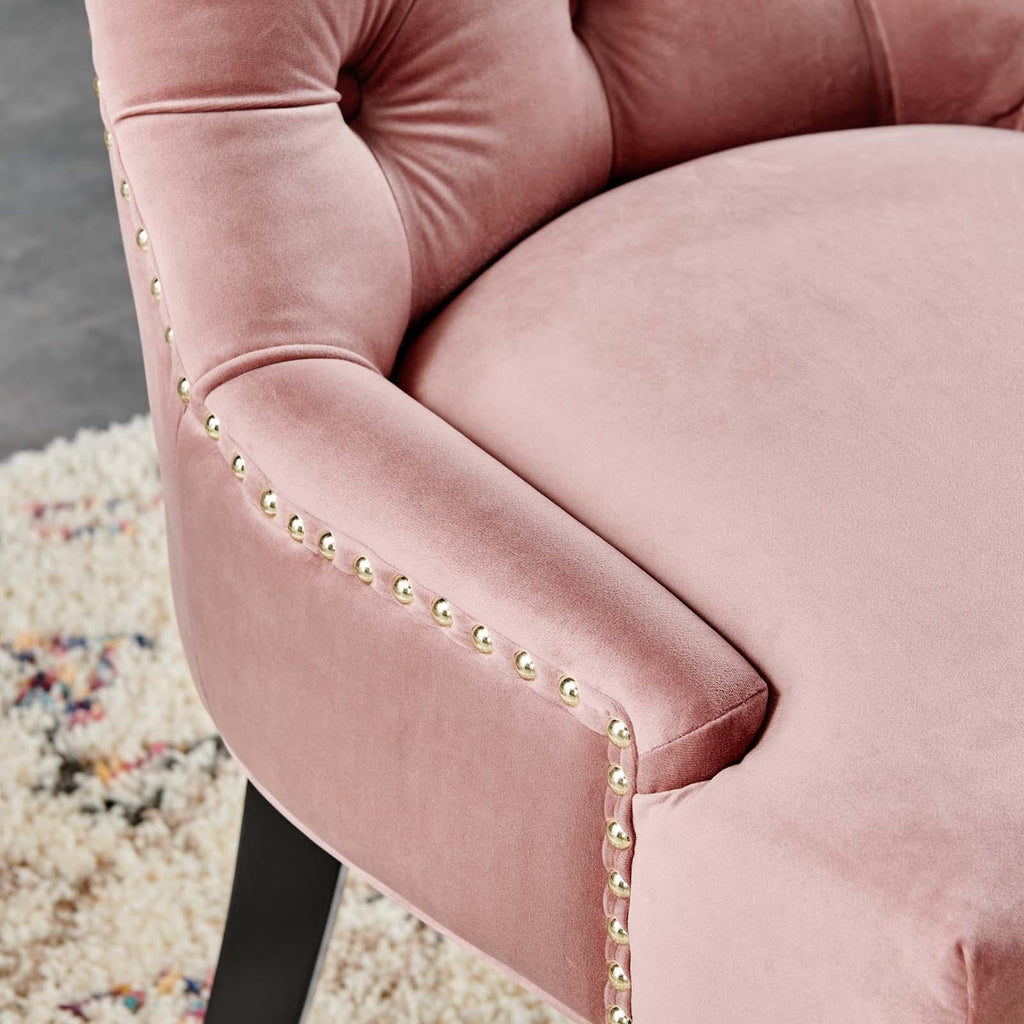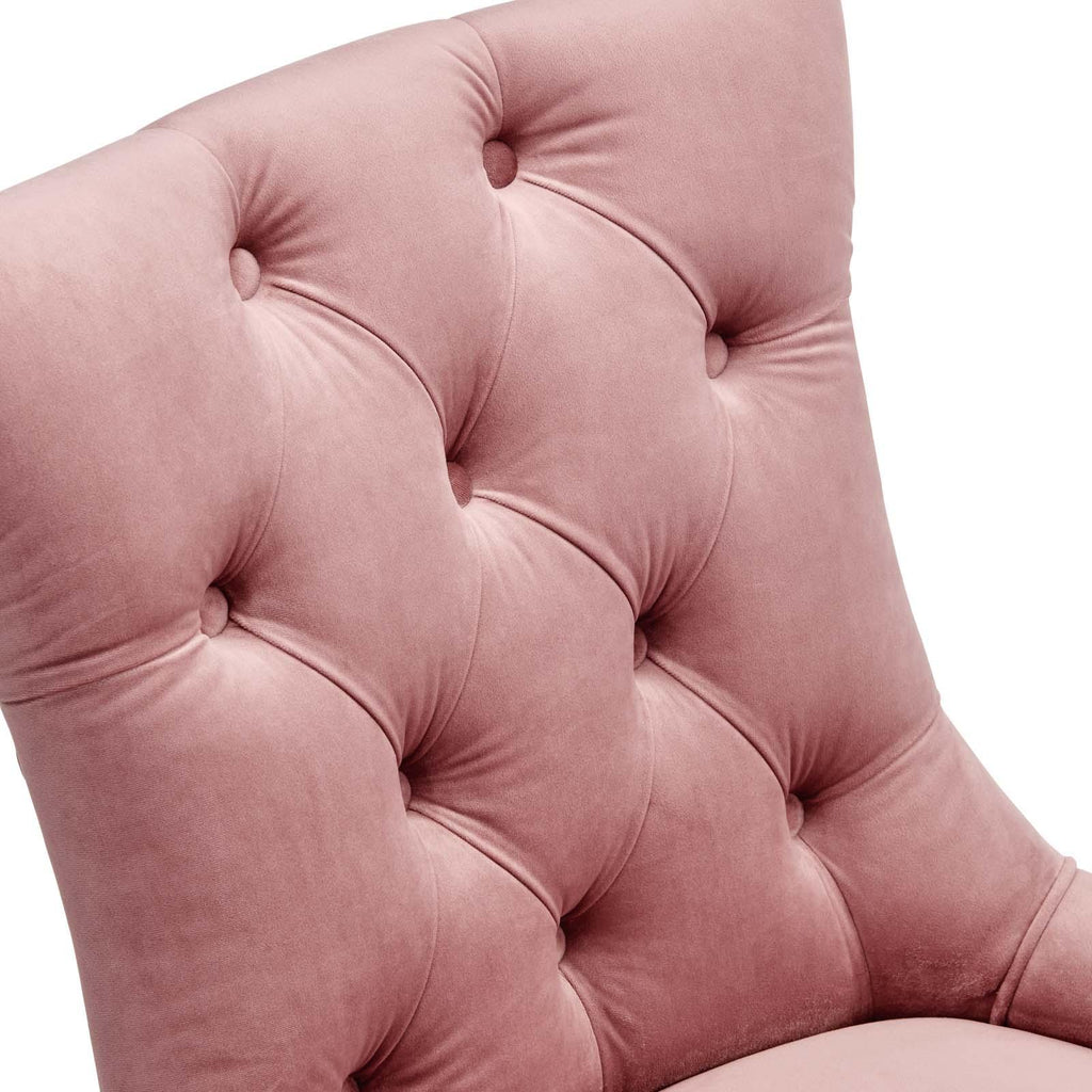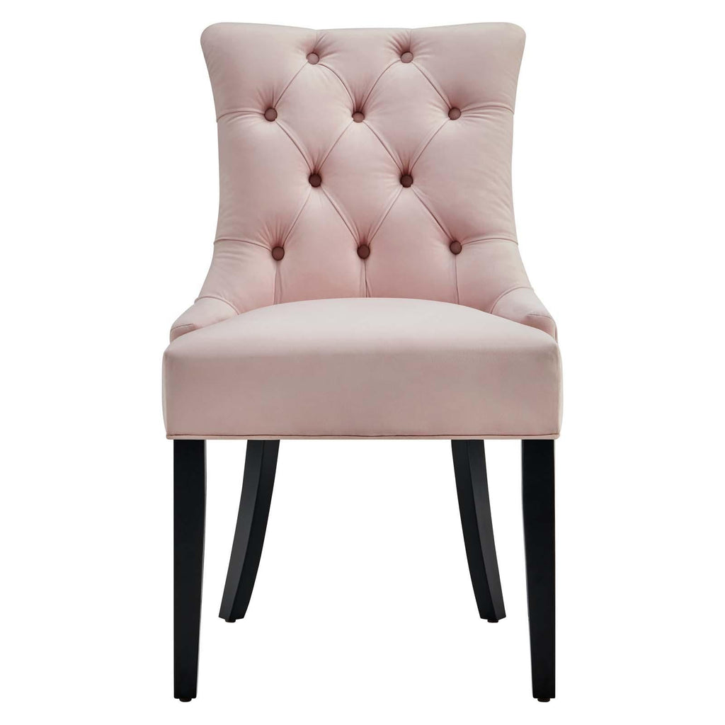 Transport your dining room d�cor to a simpler time with the Regent Tufted Button Upholstered Performance Velvet Dining Chair. With a chic and elegant look, the Regent Accent Chair features finely tufted buttons and studded nailhead trim that enhance any dining room, living room, lounge room, or office decor with timeless elegance. The Regent Dining Chair has a seat generously padded with foam and a spring coil system with webbing for long-lasting comfort. Covered in stain-resistant performance velvet upholstery, the Regent Dining Room Side Chair comes with non-marking foot caps, tapered wood legs, and is a masterful choice for modern and traditional dining and living rooms. Chair Weight Capacity: 500 lbs.