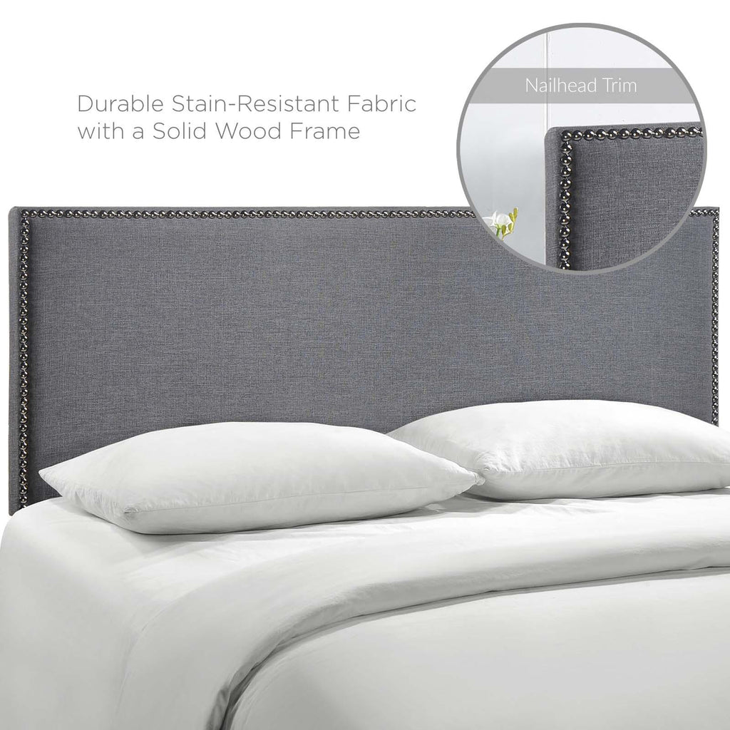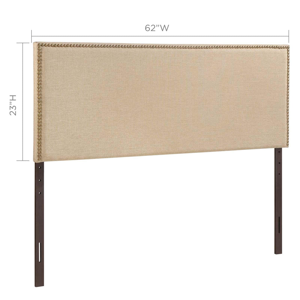 Enhance your bed of choice with a spaciously designed Modway Region Linen Fabric Upholstered Queen Headboard. Region Queen Headboard captures the expansive moments of restful nights with an elegance that doesn�t detract from the simplicity of the design. Made of particleboard with solid wood poles and fine linen fabric upholstery, and stylish nailhead trim, rejoice with a contemporary design that admirably complements your contemporary d�cor and most queen beds.