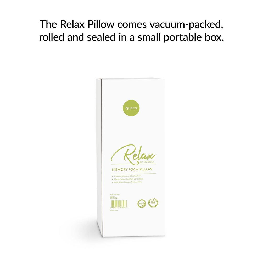 Sleep soundly with the Relax Standard Size Pillow. Cushioned with an abundance of shredded memory foam, Relax features a non-removable pillowcase made of a cooling blend of 60% polyester and 40% rayon derived from bamboo. Friendly to those with allergies and dust sensitivities, Relax comes with a one year spring back warranty that guarantees against flattening.