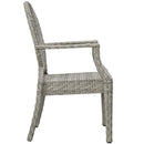 Transform your favorite dining chair into a versatile outdoor patio piece. Casper Outdoor Patio Rattan Dining Arm Chair will revolutionize your patio arrangement with functional grace and artistic harmony. Made of weather tested dual-gray synthetic rattan, Casper Outdoor Dining Chair will become the favorite resting point for scenic admiration and memorable moments.