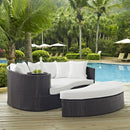 Gather stages of sensitivity with the Convene Outdoor Sectional series. Made with a synthetic rattan weave and a powder-coated aluminum frame, Convene Patio Lounge Daybed Sofa with Ottoman is a versatile outdoor piece that shifts and combines according to the spontaneous needs of the moment. Outfitted with all-weather fabric cushions, leave a positive impression on friends and family while enhancing your patio, backyard, or poolside repast in this series of palpable distinction. This installment of the series is an Outdoor Patio Lounge Daybed.