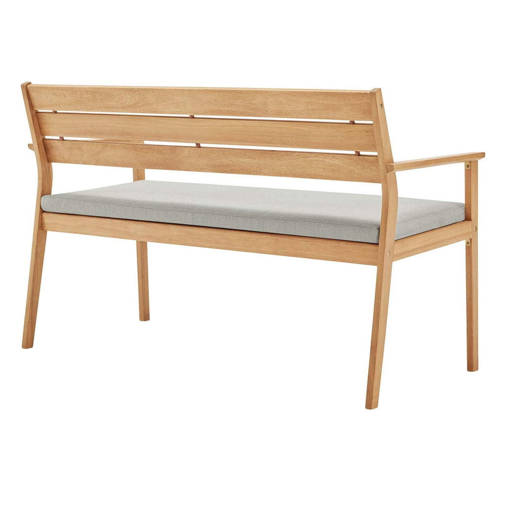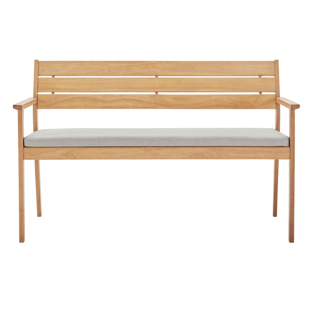 Enjoy both cottage charm and a sleek style with the Viewscape Outdoor Patio Loveseat. Constructed from FSC certified ash wood, this 53" two-seater sofa is a substantial addition to your outdoor furniture decor. Complete with a slatted wood frame for natural airflow, and four tapered legs, this patio loveseat has an all-weather removable cushion for easy cleaning. With ribbons to secure the cushion onto the seat base, this two-seater couch evokes the rustic style of wooded cabins and lakeside houses. A perfect addition to the patio, deck, porch, or poolside. Loveseat Weight Capacity: 441 lbs.