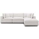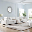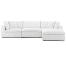 A haven for cozy relaxation, Commix features plush comfort, clean-lined design, and spacious profile, that makes an attractive statement in the modern home. Upholstered in soft polyester and linen fabric, this living room set comes with solid wood construction and cotton and down cushions for a luxurious sink-in feel. Commix comes with generously padded down feather and cotton cushions, and padded foam bases, making this sectional sofa collection perfect for the living room, family room, or game room. Made for sprawling out or curling up, Commix beckons you and guests to sit and stay a while. Includes plastic foot glides. Weight Capacity: 331 lbs.