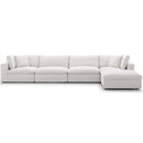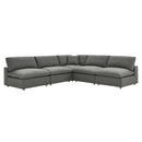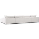 A haven for cozy relaxation, Commix features plush comfort, clean-lined design, and spacious profile, that makes an attractive statement in the modern home. Upholstered in soft polyester and linen fabric, this living room set comes with solid wood construction and cotton and down cushions for a luxurious sink-in feel. Commix comes with generously padded down feather and cotton cushions, and padded foam bases, making this sectional sofa collection perfect for the living room, family room, or game room. Made for sprawling out or curling up, Commix beckons you and guests to sit and stay a while. Includes plastic foot glides. Weight Capacity: 331 lbs.