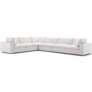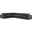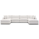 A haven for cozy relaxation, Commix features plush comfort, clean-lined design, and spacious profile, that makes an attractive statement in the modern home. Upholstered in soft polyester and linen fabric, this living room set comes with solid wood construction and cotton and down cushions for a luxurious sink-in feel. Commix comes with generously padded down feather and cotton cushions, and padded foam bases, making this sectional sofa collection perfect for the living room, family room, or game room. Made for sprawling out or curling up, Commix beckons you and guests to sit and stay a while. Includes plastic foot glides. Weight Capacity: 331 lbs.