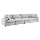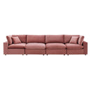 A haven for cozy relaxation, Commix features plush comfort, clean-lined design, and spacious profile, that makes an attractive statement in the modern home. Covered in stain-resistant performance velvet, this upholstered sofa comes with a solid wood construction and foam padded and duck down cushions for a luxurious sink-in feel. Commix features overstuffed down feather cushions that offer a feeling of relaxation and calming comfort while lounging, making it the perfect addition to the living room, family room, or game room. Made for sprawling out or curling up, Commix beckons you and guests to sit and stay a while. Includes plastic foot glides. Weight Capacity of Each Piece: 331 lbs.
