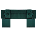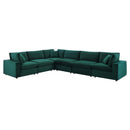 A haven for cozy relaxation, Commix features plush comfort, clean-lined design, and spacious profile, that makes an attractive statement in the modern home. Covered in stain-resistant performance velvet, this upholstered sectional sofa comes with a solid wood construction and foam padded and duck down cushions for a luxurious sink-in feel. Commix features overstuffed down feather cushions that offer a feeling of relaxation and calming comfort while lounging, making it the perfect addition to the living room, family room, or game room. Made for sprawling out or curling up, Commix beckons you and guests to sit and stay a while. Includes plastic foot glides. Weight Capacity Each Chair: 331 lbs.