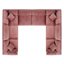 A haven for cozy relaxation, Commix features plush comfort, clean-lined design, and spacious profile, that makes an attractive statement in the modern home. Covered in stain-resistant performance velvet, this upholstered sectional sofa comes with a solid wood construction and foam padded and duck down cushions for a luxurious sink-in feel. Commix features overstuffed down feather cushions that offer a feeling of relaxation and calming comfort while lounging, making it the perfect addition to the living room, family room, or game room. Made for sprawling out or curling up, Commix beckons you and guests to sit and stay a while. Includes plastic foot glides. Weight Capacity Each Chair: 331 lbs.