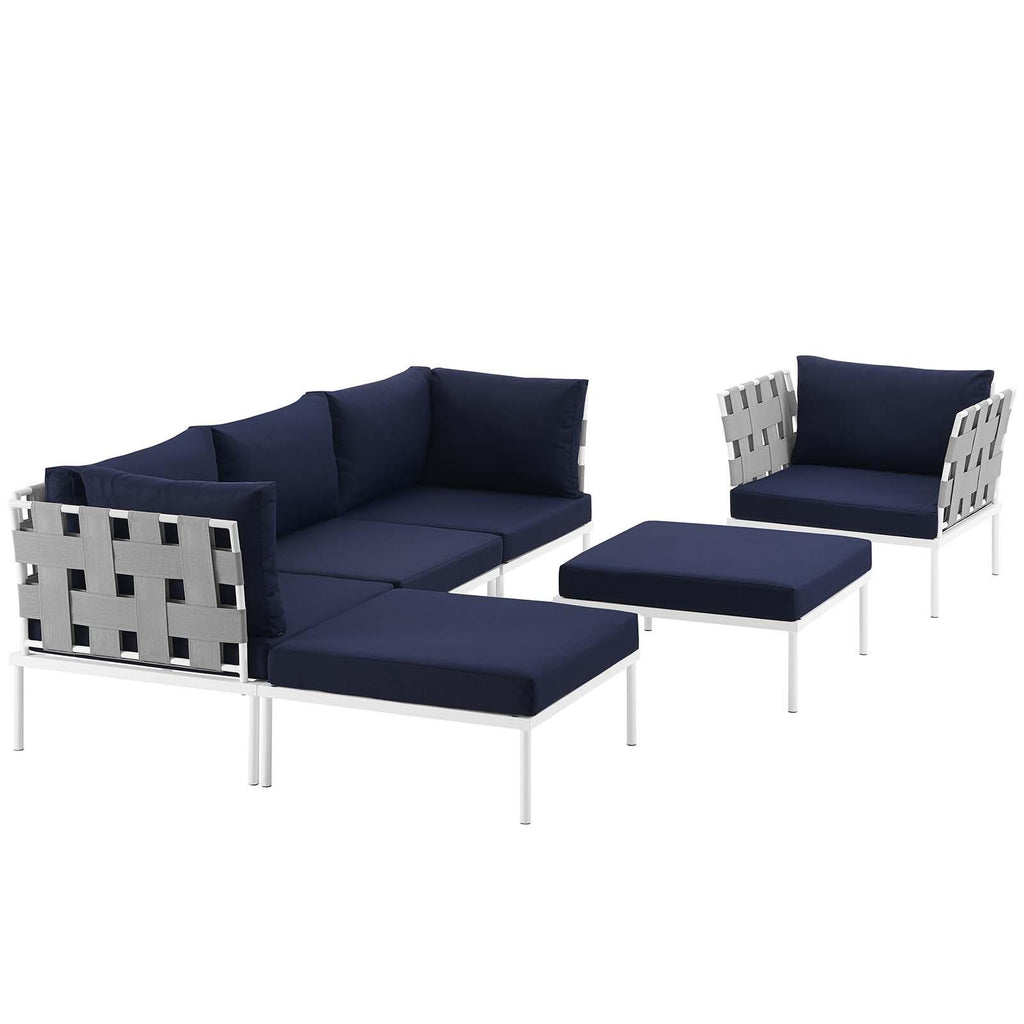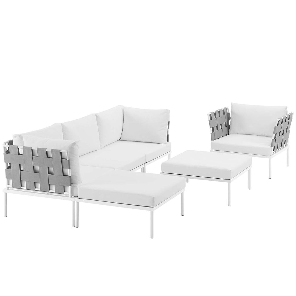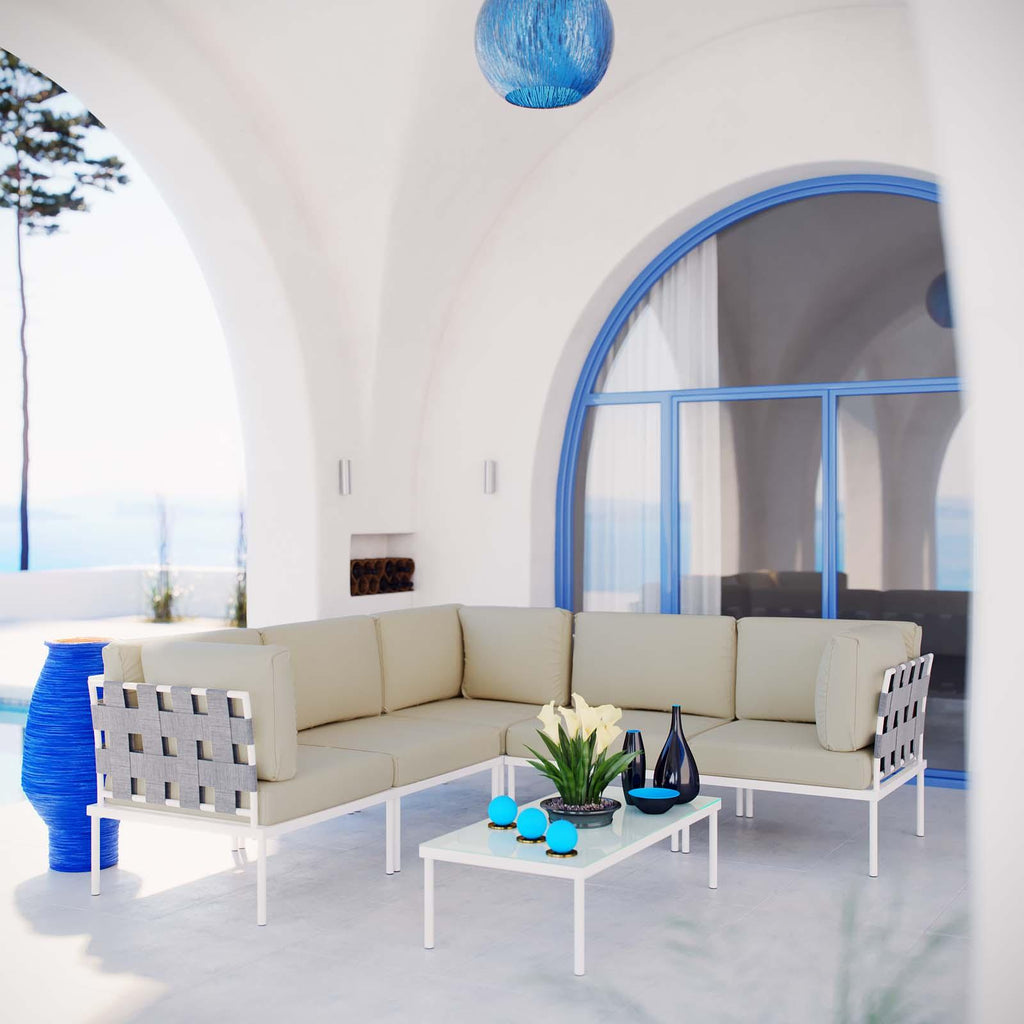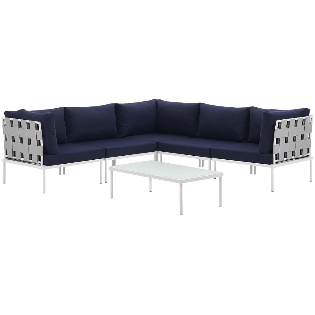Engage life with Harmony Outdoor Patio Sectional Sofa Furniture Set. Enjoy casual conversation under the open sky with an all-weather waterproof furniture set that delivers an exceptional outdoor porch, patio, balcony or garden experience. An exceptional modern patio furniture set that exceeds expectations, this Harmony Outdoor Sectional set comes with long-lasting machine washable cushions, silk polyester seat back weave, square powder coated aluminum bases, tempered glass top tables, and non-marking foot caps. A sectional sofa that arranges according to the spontaneous needs of your guests, set your sights on open and inspired moments with the Harmony Outdoor Patio Collection.