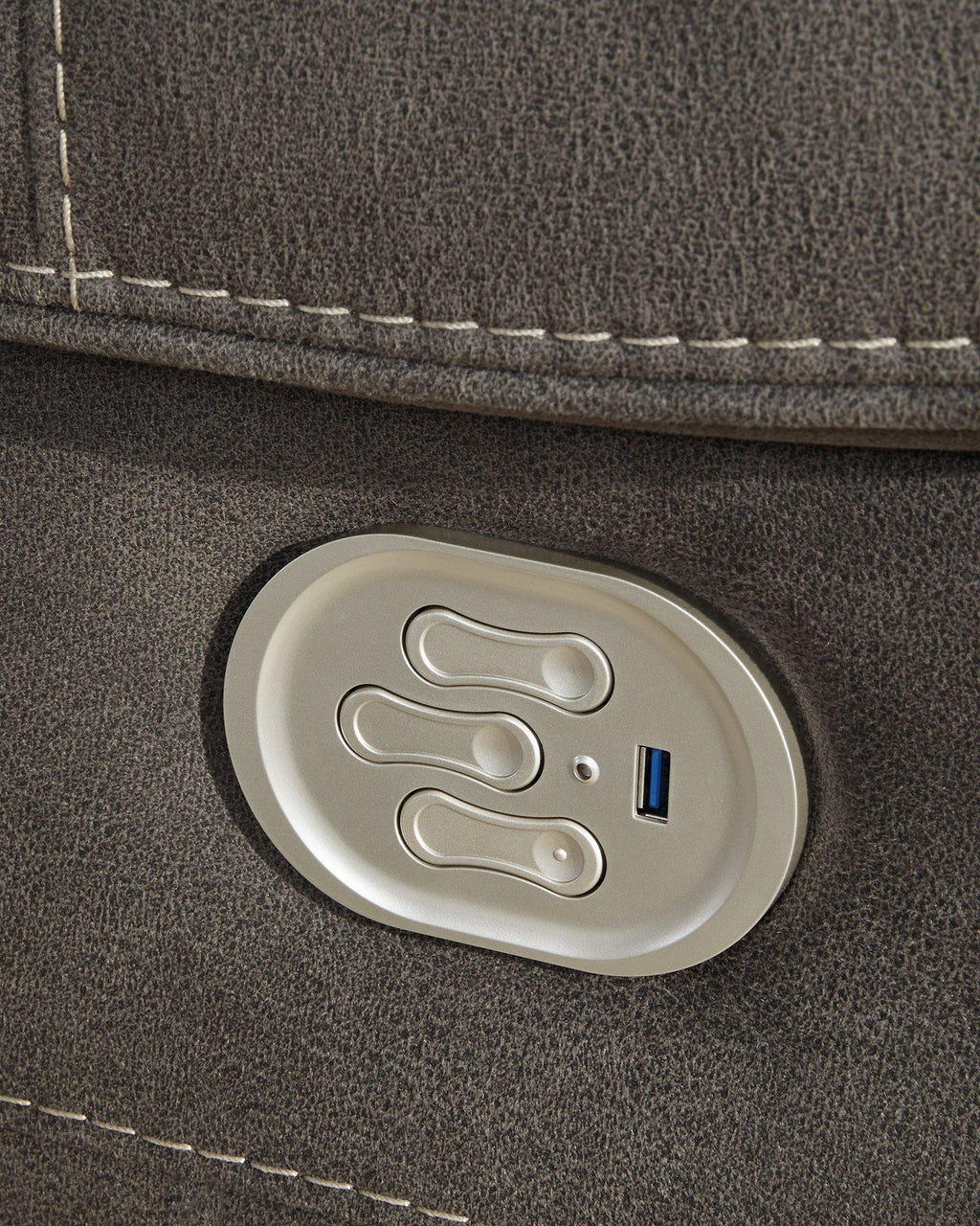 Stylish in design and function, this power reclining sectional with console creates a comfortable place to gather with family and friends. The sectional, upholstered in heavyweight faux leather with quilting and jumbo stitching, invites you to sink into plush opulence at an affordable price. The zero-wall power reclining mechanism features infinite positions for comfort. Conveniently plug in your devices to the USB charging station. Appealing to those with an eye for sumptuous design and high-tech features, this gunmetal gray sectional will always be a win.