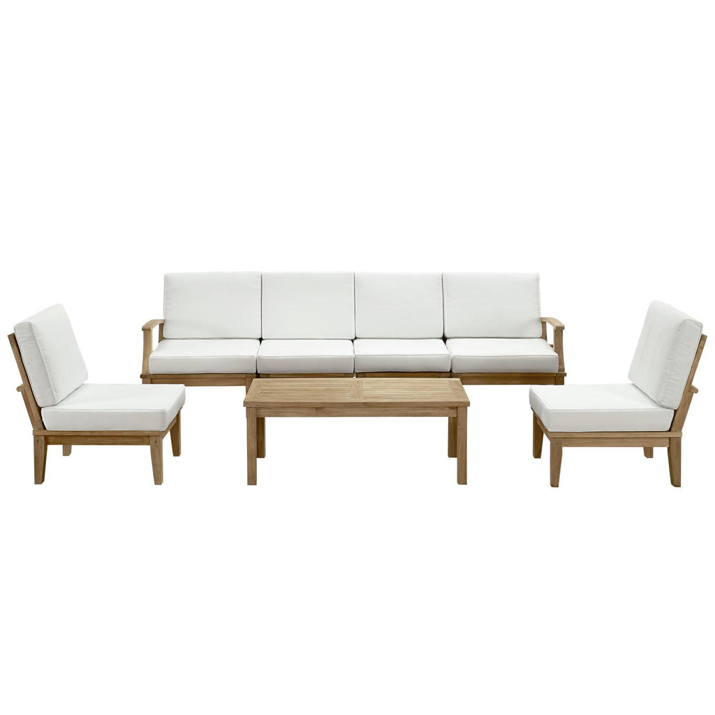 Harbor your greatest expectations with the luxurious Marina Teak Wood Outdoor Patio Furniture Sofa Sectional set. Marina Patio Furniture series has a seating arrangement perfect for every member of your crew as you breathe the fresh, crisp air of a day spent with friends and family. Known for its natural ability to withstand extreme weather conditions, teak is the wood selection of choice for long-lasting outdoor patio furniture. Now you can enjoy Marina Teak Wood Outdoor Sectional Sofa set with its durable construction and all-weather cushions, alongside a modern design that persistently looks new and welcoming in your patio seating environs. Assembly required.