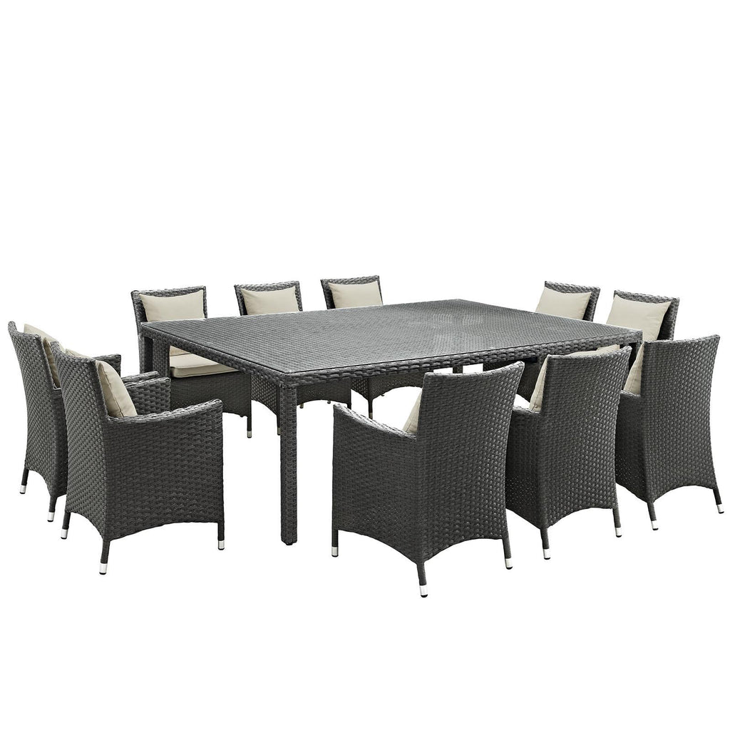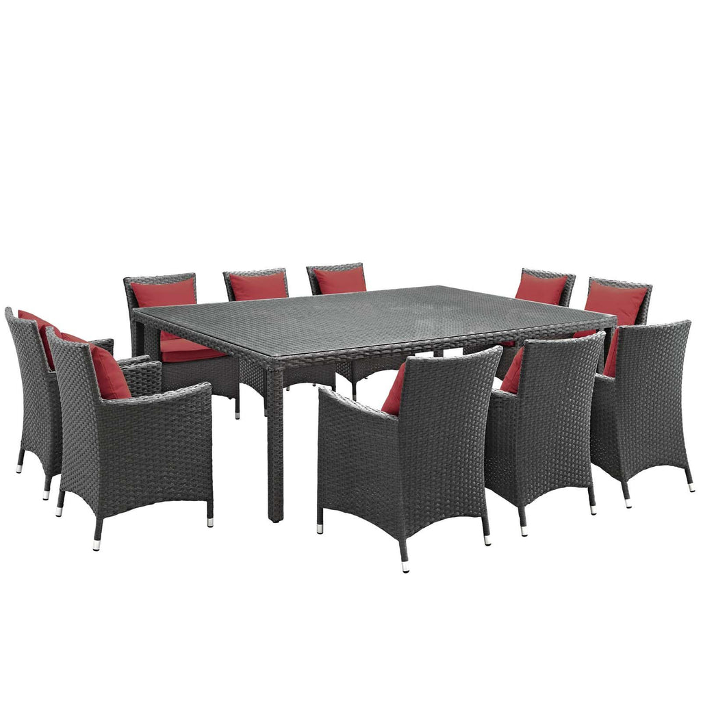 Outfit your patio with an imaginative Sojourn Outdoor Patio Furniture series. The Sojourn Patio Dining Collection offers a robust seating experience that easily rearranges according to usage. Outfitted with industry-leading Sunbrella� fabric cushions, synthetic rattan weave, UV protection, powder-coated aluminum frame, immensely enjoy your outdoor time with an outdoor dining series that enhances patio, backyard, or poolside areas. This installment of the series is an Outdoor Patio Dining Set.