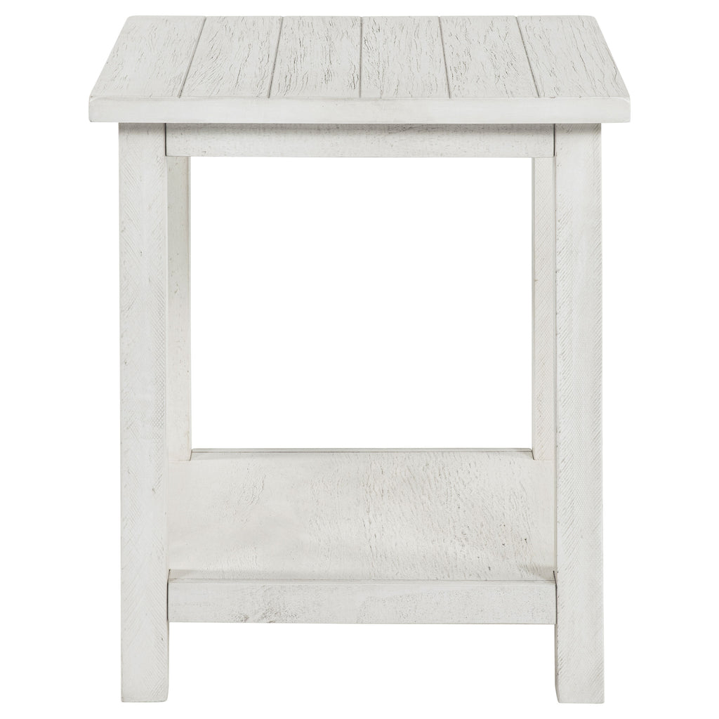 This rustic end table merges classic style with practical storage, making it a charming focal point in any living room. Built from pine wood and reinforced with engineered wood, its square silhouette highlights a subtle, timeworn aesthetic. An integrated drawer keeps items neatly stowed, while the lower shelf offers additional display space. This side table works beautifully as an accent in a modern farmhouse or relaxed, casual setting. Key Features: • Energize your seating area with this end table, delivering a compact yet eye-catching design for any room • Distressed brown finish enhances its worn appeal, creating a hint of farmhouse flair in your layout • One convenient drawer keeps essentials tucked away, offering a clutter-free zone in any living area • A sturdy lower shelf doubles as a display area for décor, magazines, or quick-grab items within reach • Made with solid pine wood, engineered wood, and pine veneer for a dependable, long-lasting foundation • Ideal as a side table or accent piece, it harmonizes with rustic themes and classic living room décor