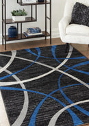 Pairing shapely swirls with bold and brilliant swashes of color this area rug is the ultra-contemporary statement piece youve been longing for. Rich palette of black gray and blue is loaded with depth and tonal interest. Manufacturer Warranty: 0 Days