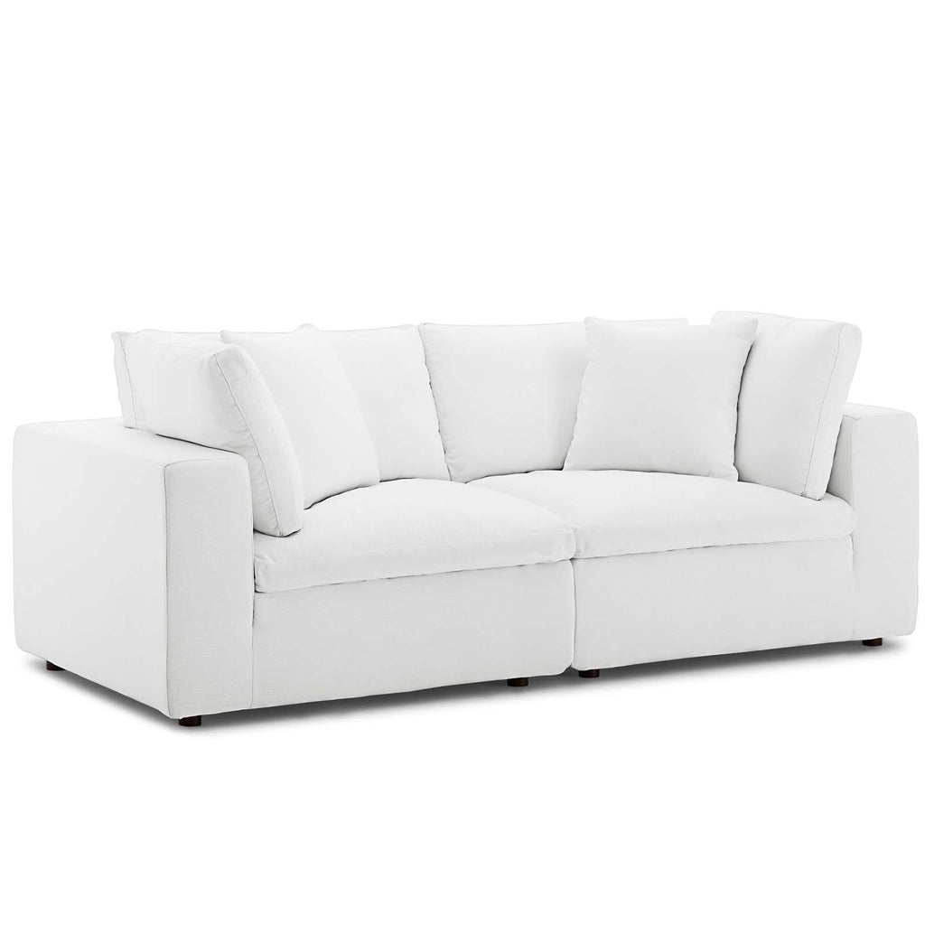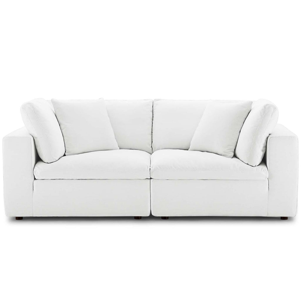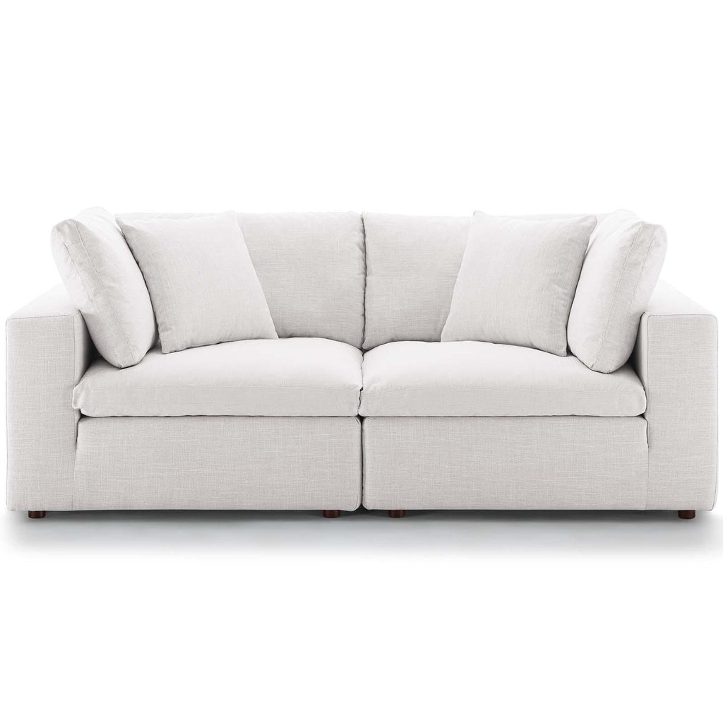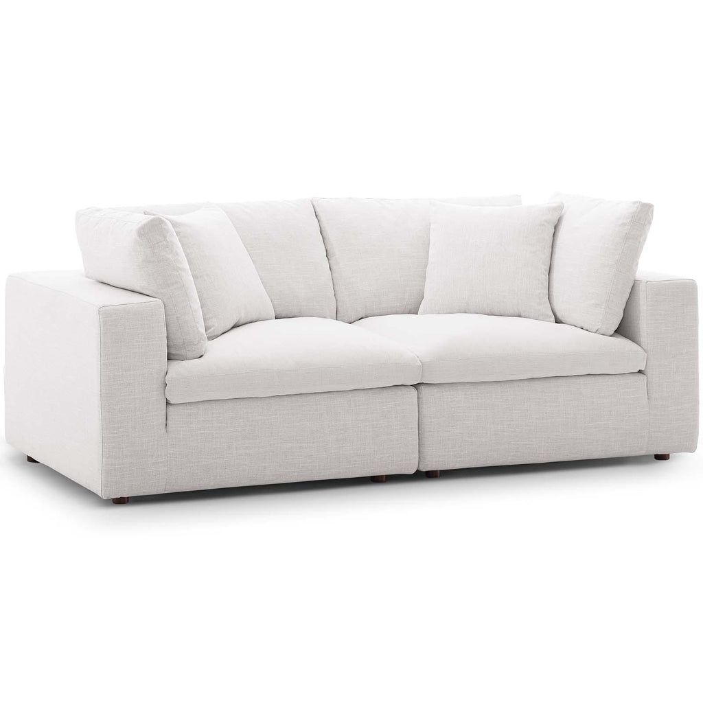 A haven for cozy relaxation, Commix features plush comfort, clean-lined design, and spacious profile, that makes an attractive statement in the modern home. Upholstered in soft polyester and linen fabric, this living room set comes with solid wood construction and cotton and down cushions for a luxurious sink-in feel. Commix comes with generously padded down feather and cotton cushions, and padded foam bases, making this sectional sofa collection perfect for the living room, family room, or game room. Made for sprawling out or curling up, Commix beckons you and guests to sit and stay a while. Includes plastic foot glides. Weight Capacity: 331 lbs.