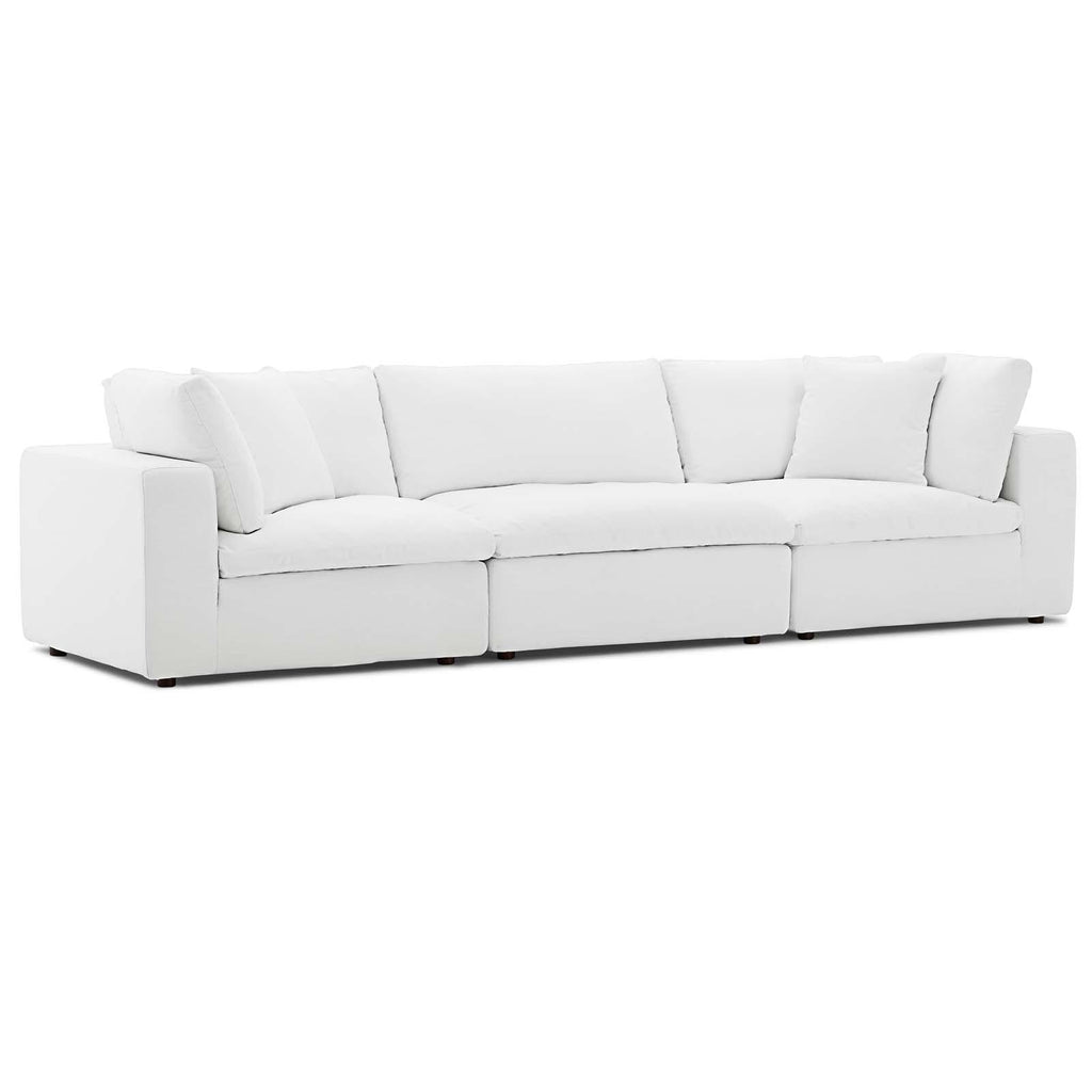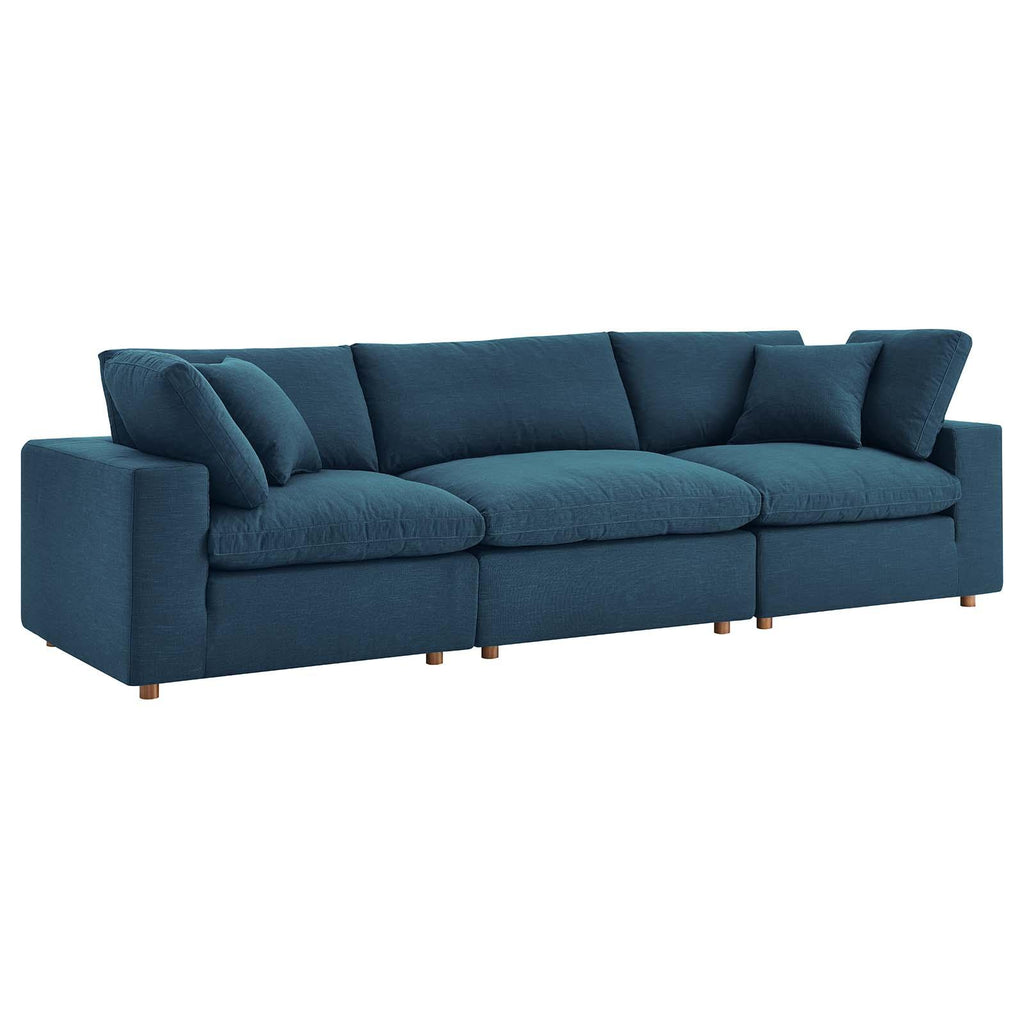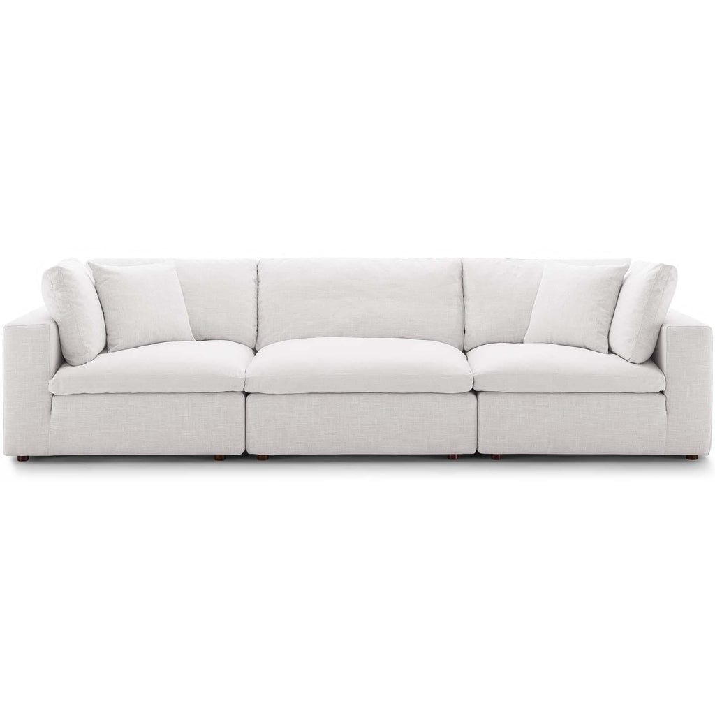 A haven for cozy relaxation, Commix features plush comfort, clean-lined design, and spacious profile, that makes an attractive statement in the modern home. Upholstered in soft polyester and linen fabric, this living room set comes with solid wood construction and cotton and down cushions for a luxurious sink-in feel. Commix comes with generously padded down feather and cotton cushions, and padded foam bases, making this sectional sofa collection perfect for the living room, family room, or game room. Made for sprawling out or curling up, Commix beckons you and guests to sit and stay a while. Includes plastic foot glides. Weight Capacity: 331 lbs.