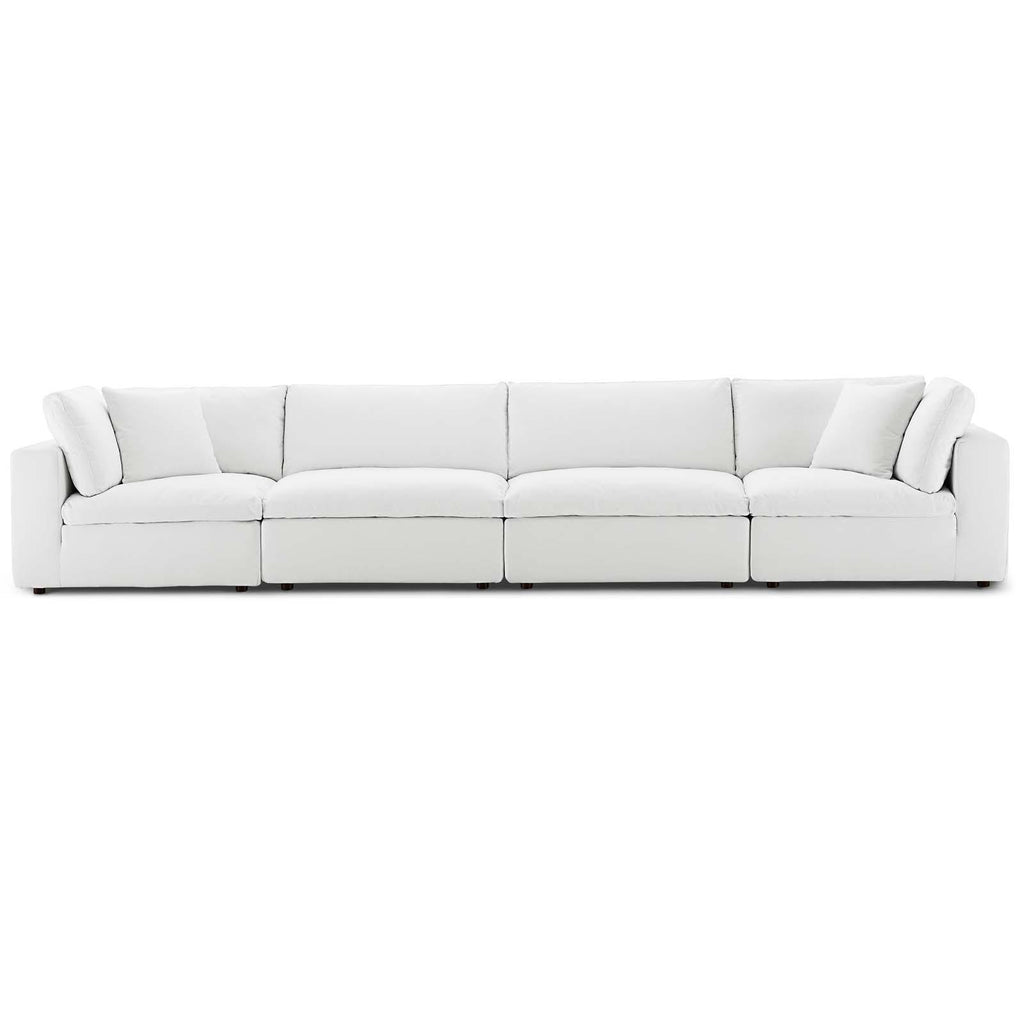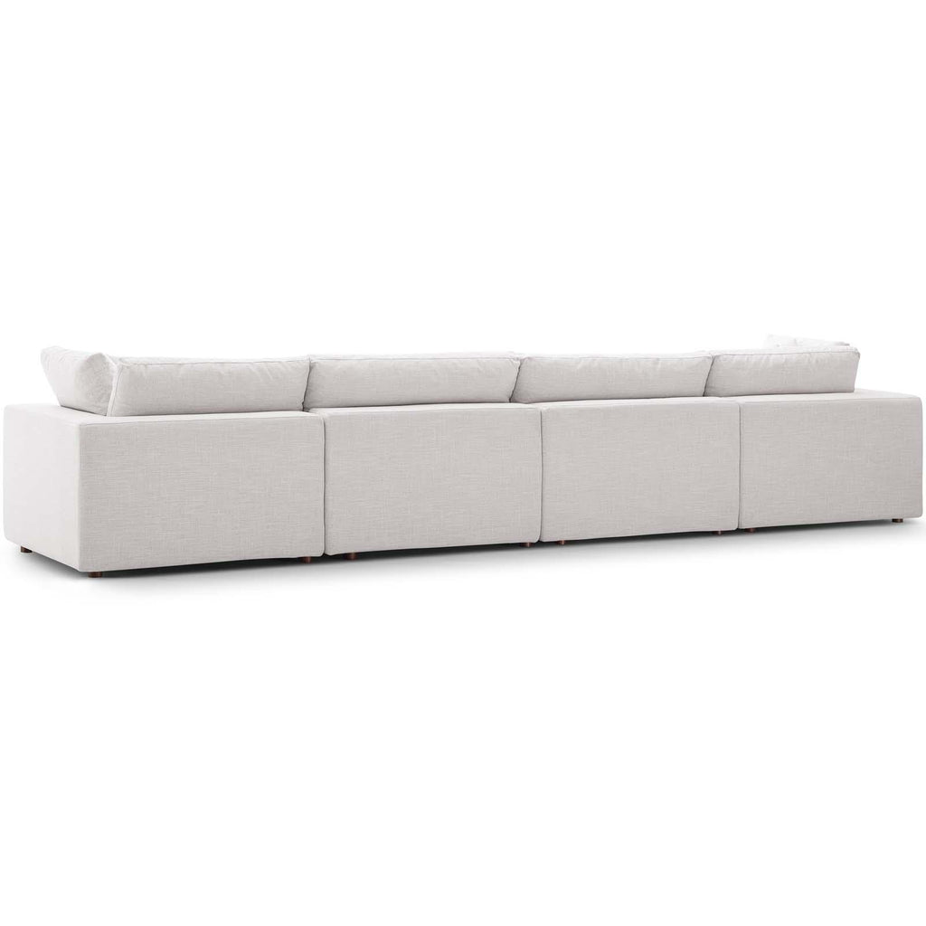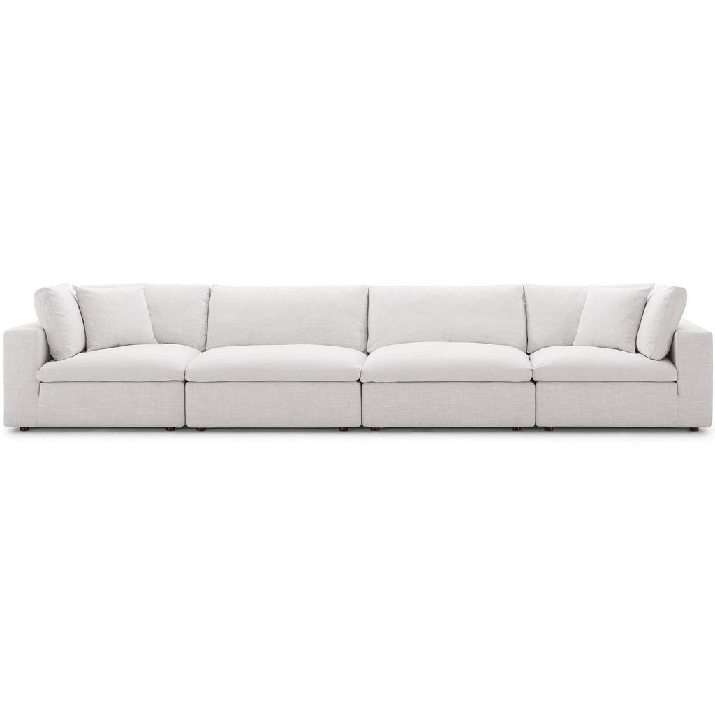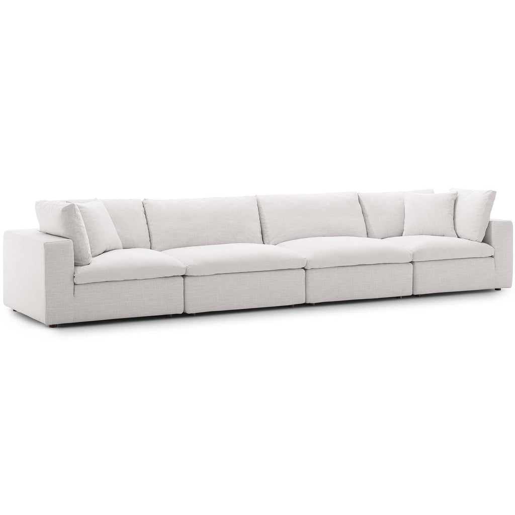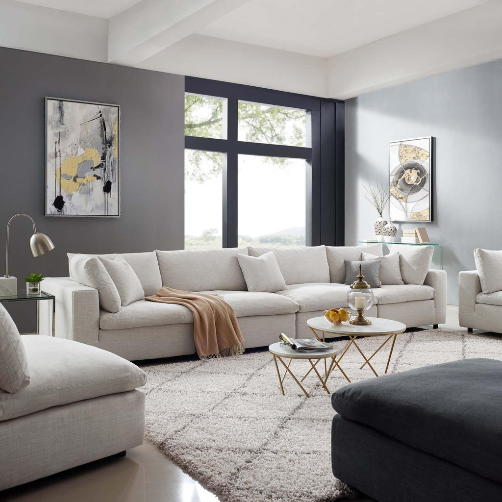 A haven for cozy relaxation, Commix features plush comfort, clean-lined design, and spacious profile, that makes an attractive statement in the modern home. Upholstered in soft polyester and linen fabric, this living room set comes with solid wood construction and cotton and down cushions for a luxurious sink-in feel. Commix comes with generously padded down feather and cotton cushions, and padded foam bases, making this sectional sofa collection perfect for the living room, family room, or game room. Made for sprawling out or curling up, Commix beckons you and guests to sit and stay a while. Includes plastic foot glides. Weight Capacity: 331 lbs.
