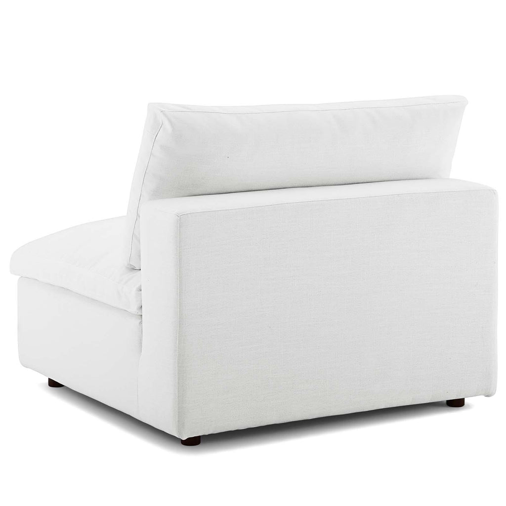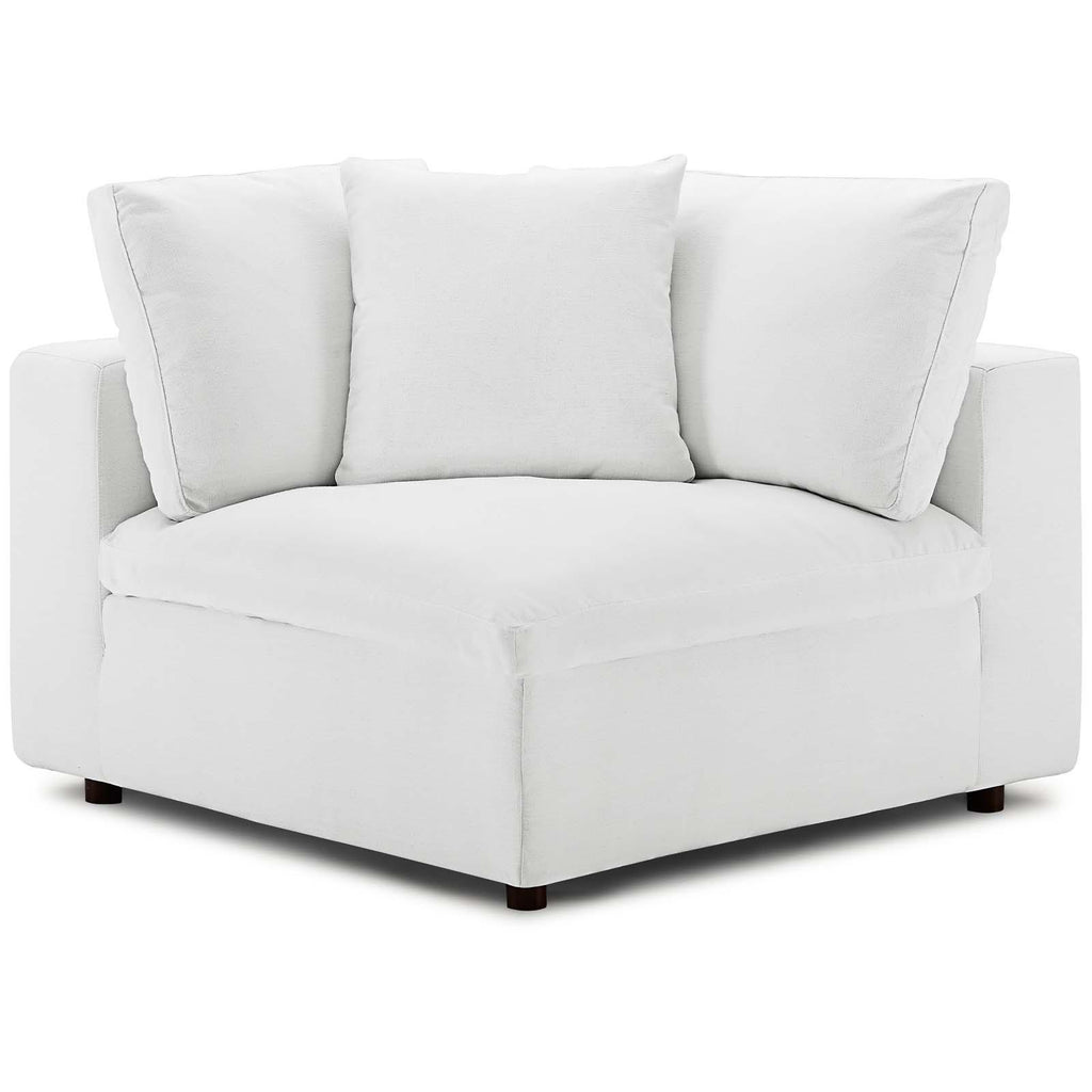 A haven for cozy relaxation, Commix features plush comfort, clean-lined design, and spacious profile, that makes an attractive statement in the modern home. Upholstered in soft polyester and linen fabric, this living room set comes with solid wood construction and cotton and down cushions for a luxurious sink-in feel. Commix comes with generously padded down feather and cotton cushions, and padded foam bases, making this sectional sofa collection perfect for the living room, family room, or game room. Made for sprawling out or curling up, Commix beckons you and guests to sit and stay a while. Includes plastic foot glides. Weight Capacity: 331 lbs. Set Includes: Four - Commix Down Filled Overstuffed Armless Chair Four - Commix Down Filled Overstuffed Corner Chair Contemporary Modern Sectional Sofa Set 85% Polyester/15% Linen Fabric Upholstery Density Foam Seat Down Feather and Cotton Cushions Solid Wood Construction Assembly Required Chair/Ottoman Weight Capacity: 331 lbs. Overall Product Dimensions: 119"L x 158"W x 35"H Overall Armless Chair Dimensions : 40"L x 39"W x 35"H Seat Dimensions: 24.5"L x 35"W x 19"H Overall Corner Chair Dimensions : 40"L x 40"W x 35"H Armrest Height: 22.5"H Leg Dimensions: 2"W x 2"H