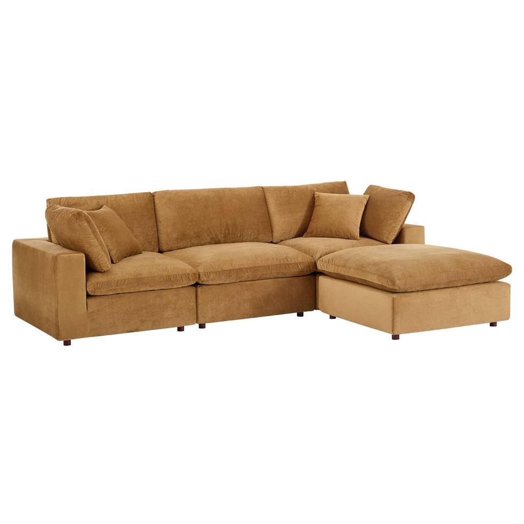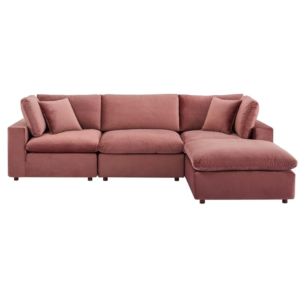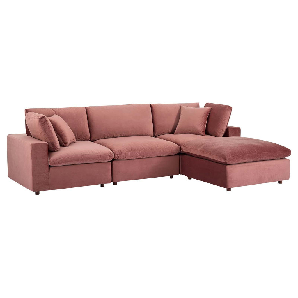 A haven for cozy relaxation, Commix features plush comfort, clean-lined design, and spacious profile, that makes an attractive statement in the modern home. Covered in stain-resistant performance velvet, this upholstered sectional sofa comes with a solid wood construction and foam padded and duck down cushions for a luxurious sink-in feel. Commix features overstuffed down feather cushions that offer a feeling of relaxation and calming comfort while lounging, making it the perfect addition to the living room, family room, or game room. Made for sprawling out or curling up, Commix beckons you and guests to sit and stay a while. Includes plastic foot glides. Weight Capacity Each Chair: 331 lbs.